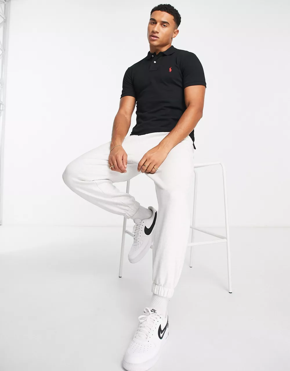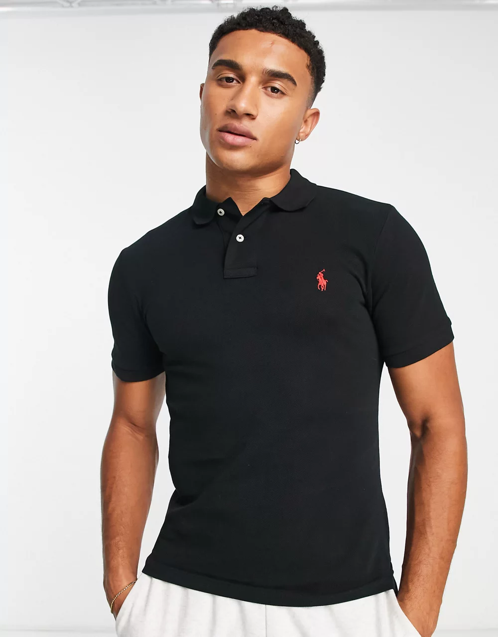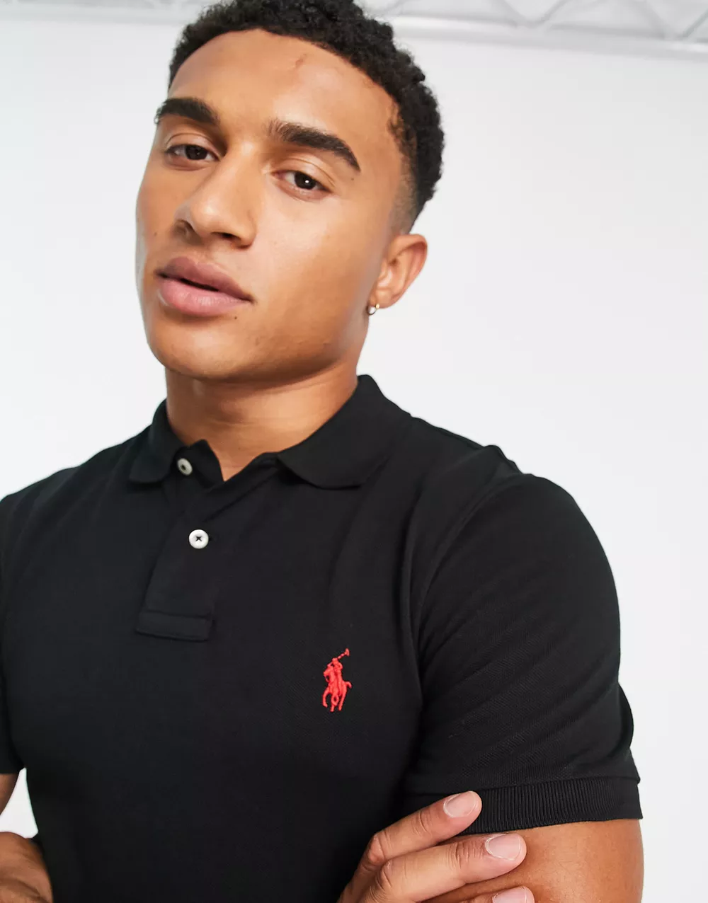 - Polo Ralph Lauren slim fit pique polo with red player logo in washed black