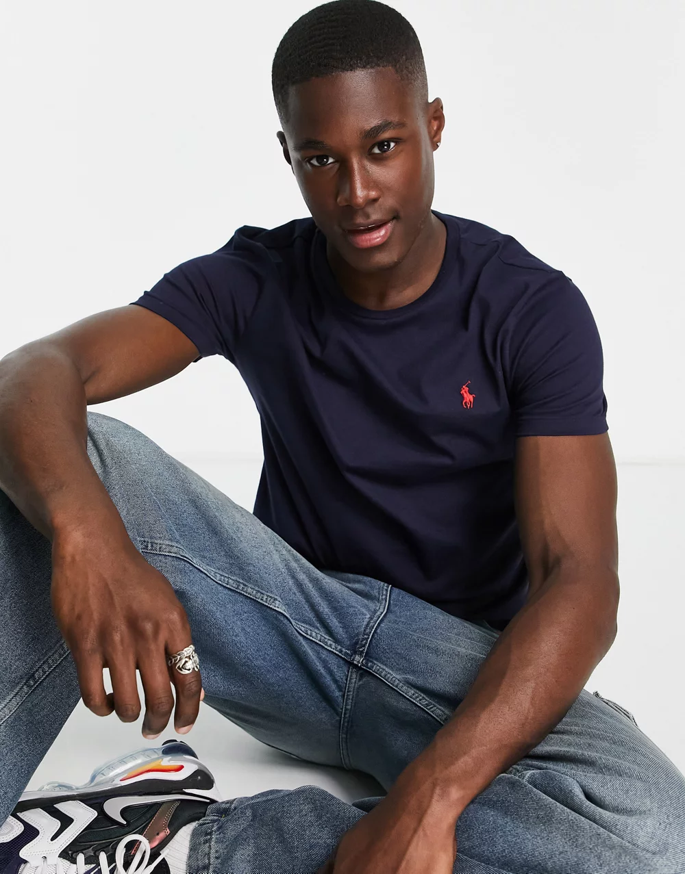 - Polo Ralph Lauren slim fit t-shirt with crew neck in navy