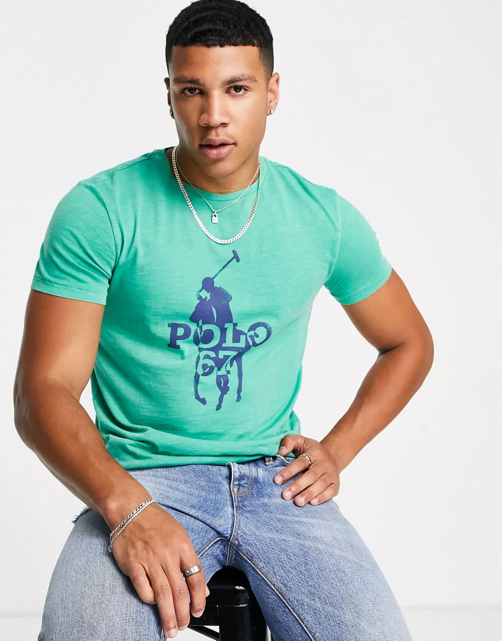 - Polo Ralph Lauren t-shirt with large player logo in mid green