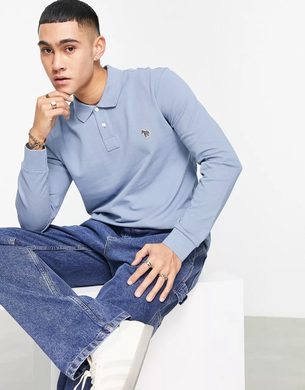 - PS Paul Smith regular fit logo long sleeve polo in pale blue 2978198542-50
