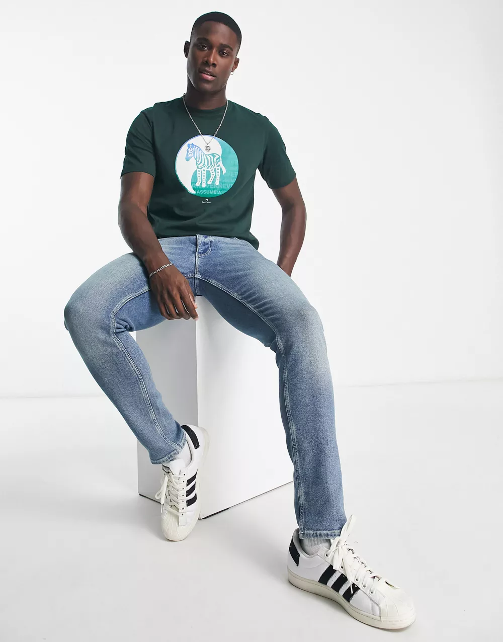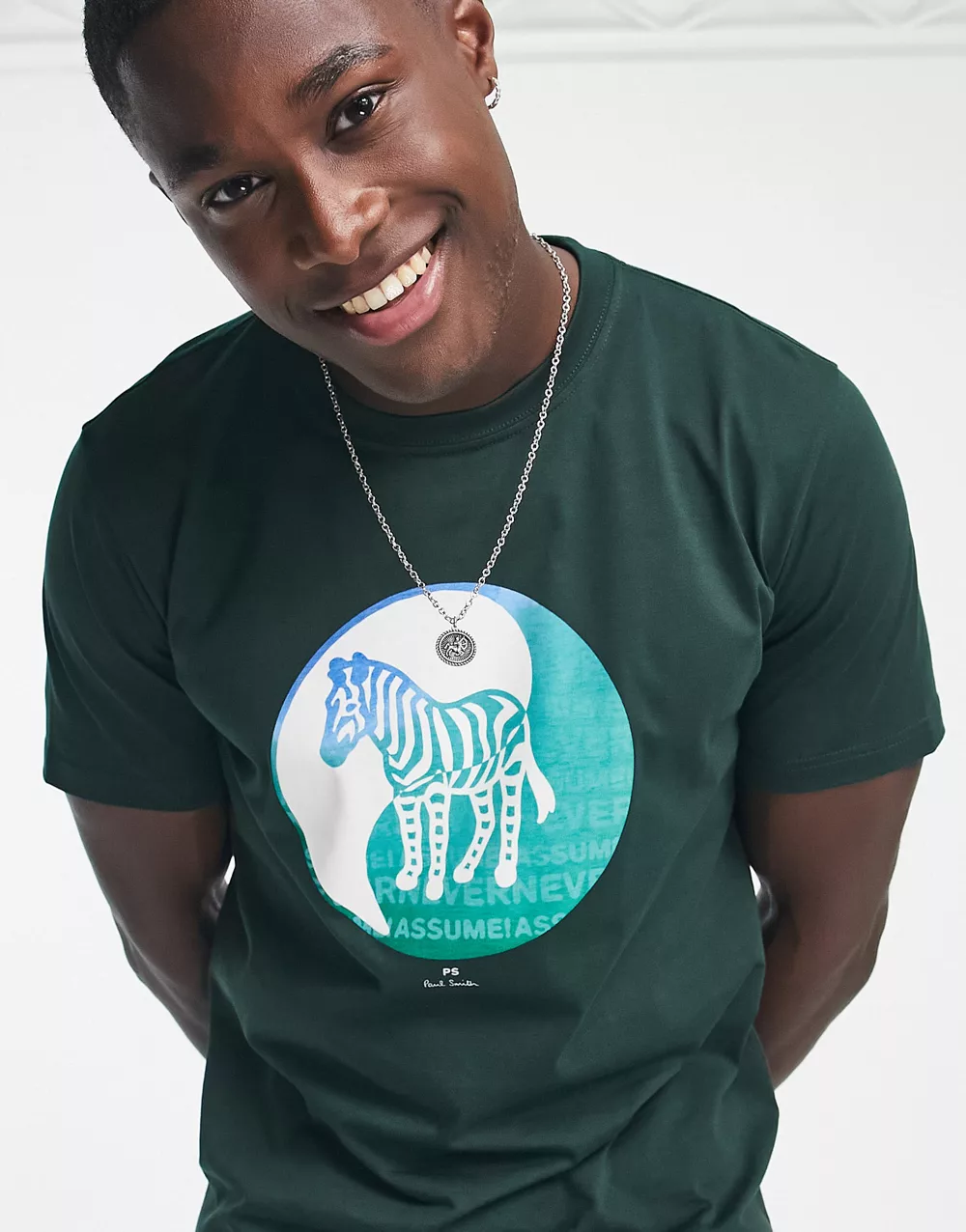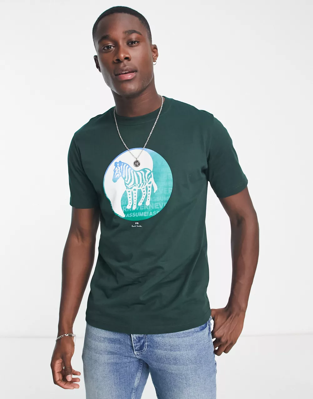 - PS Paul Smith t-shirt in dark green with ying yand zerbra graphics