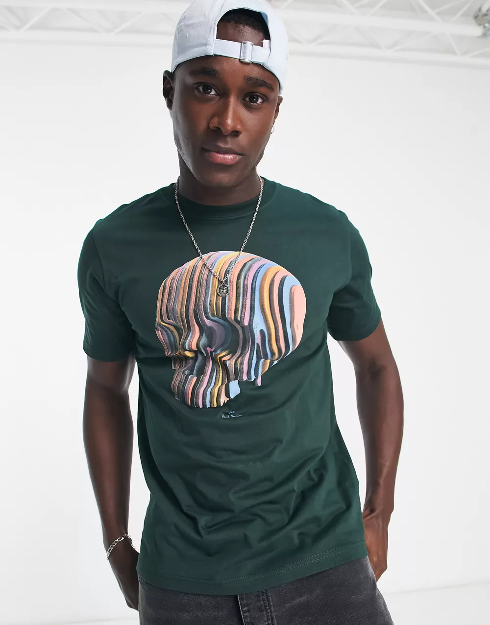 - PS Paul Smith t-shirt with multi colour skull graphics in dark green