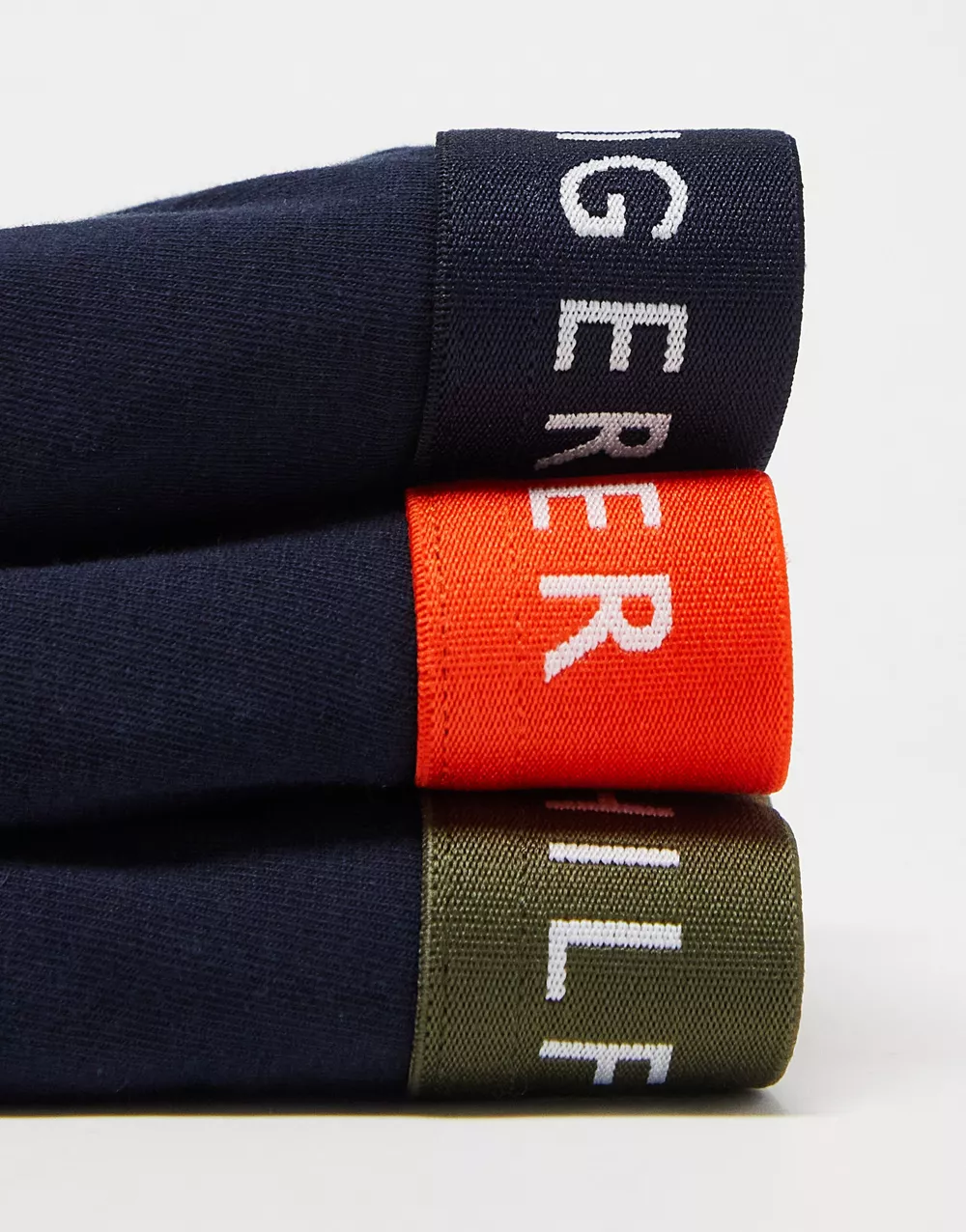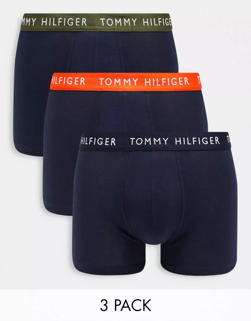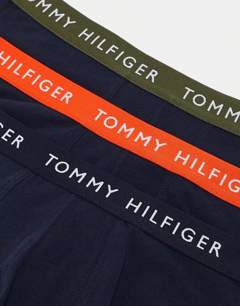 - Tommy Hilfiger 3-pack trunks in navy with khaki, orange and blue waistband