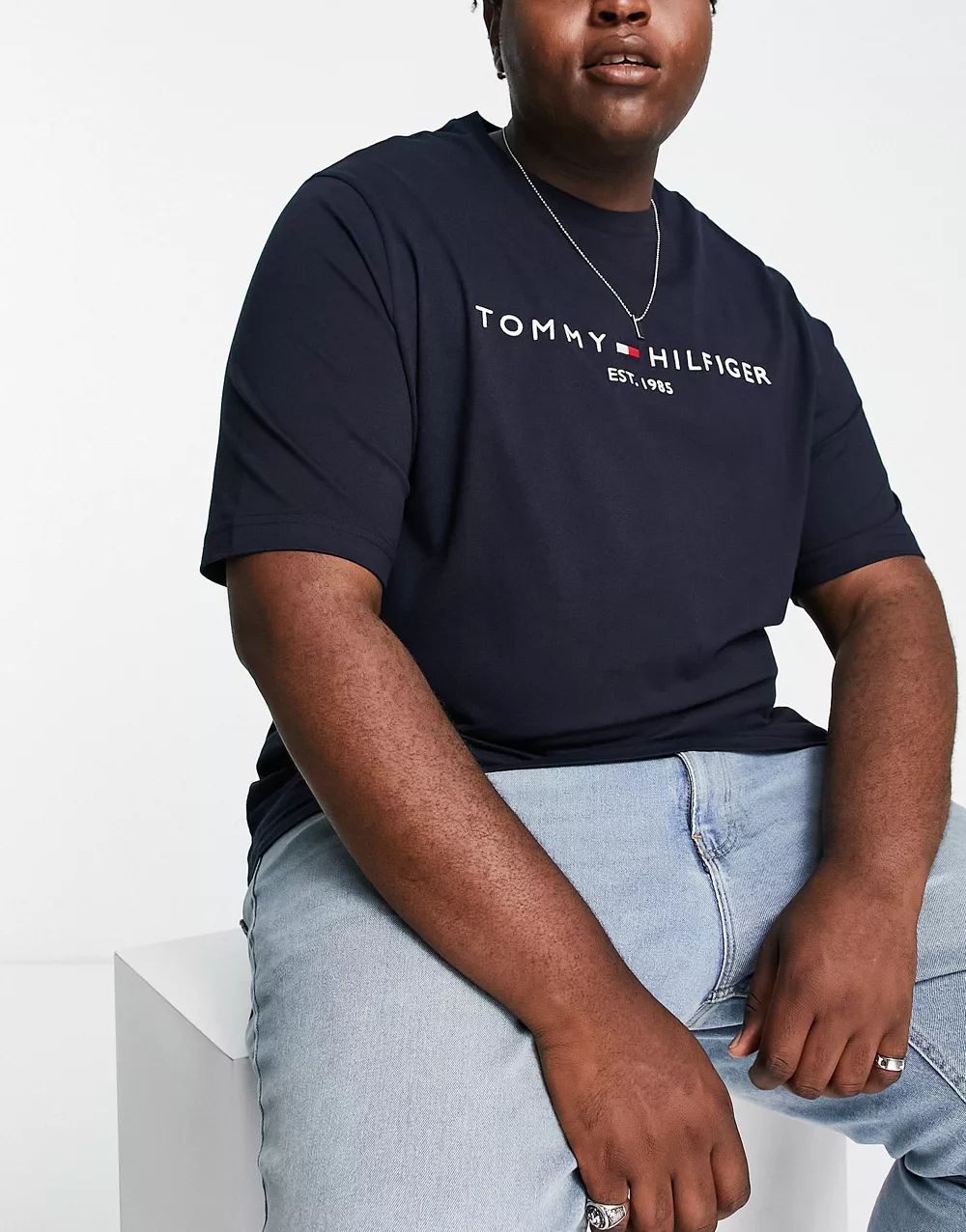 - Tommy Hilfiger Big & Tall embroidered logo t-shirt in navy