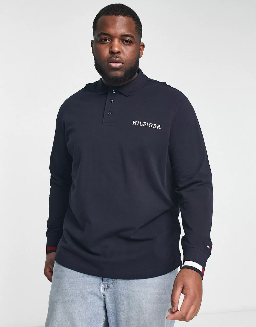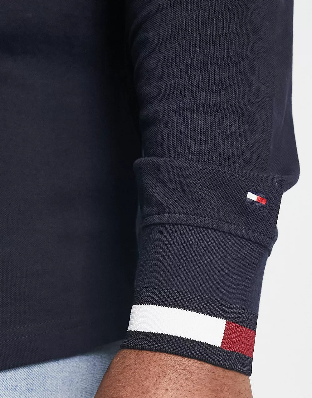 - Tommy Hilfiger Big & Tall flag cuff long sleeve polo shirt in black