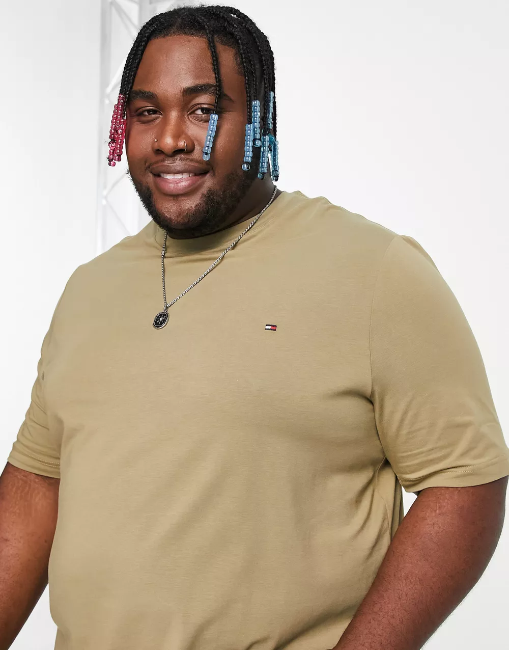 - Tommy Hilfiger Big & Tall icon logo slim fit t-shirt in tan