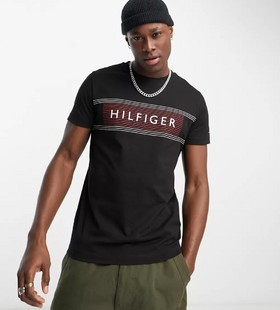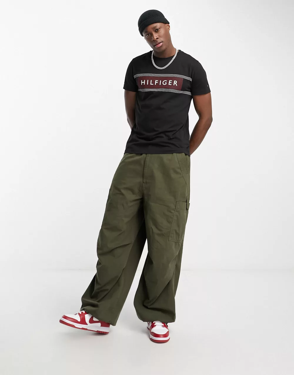 - Tommy Hilfiger chest corp stripe logo t-shirt in black