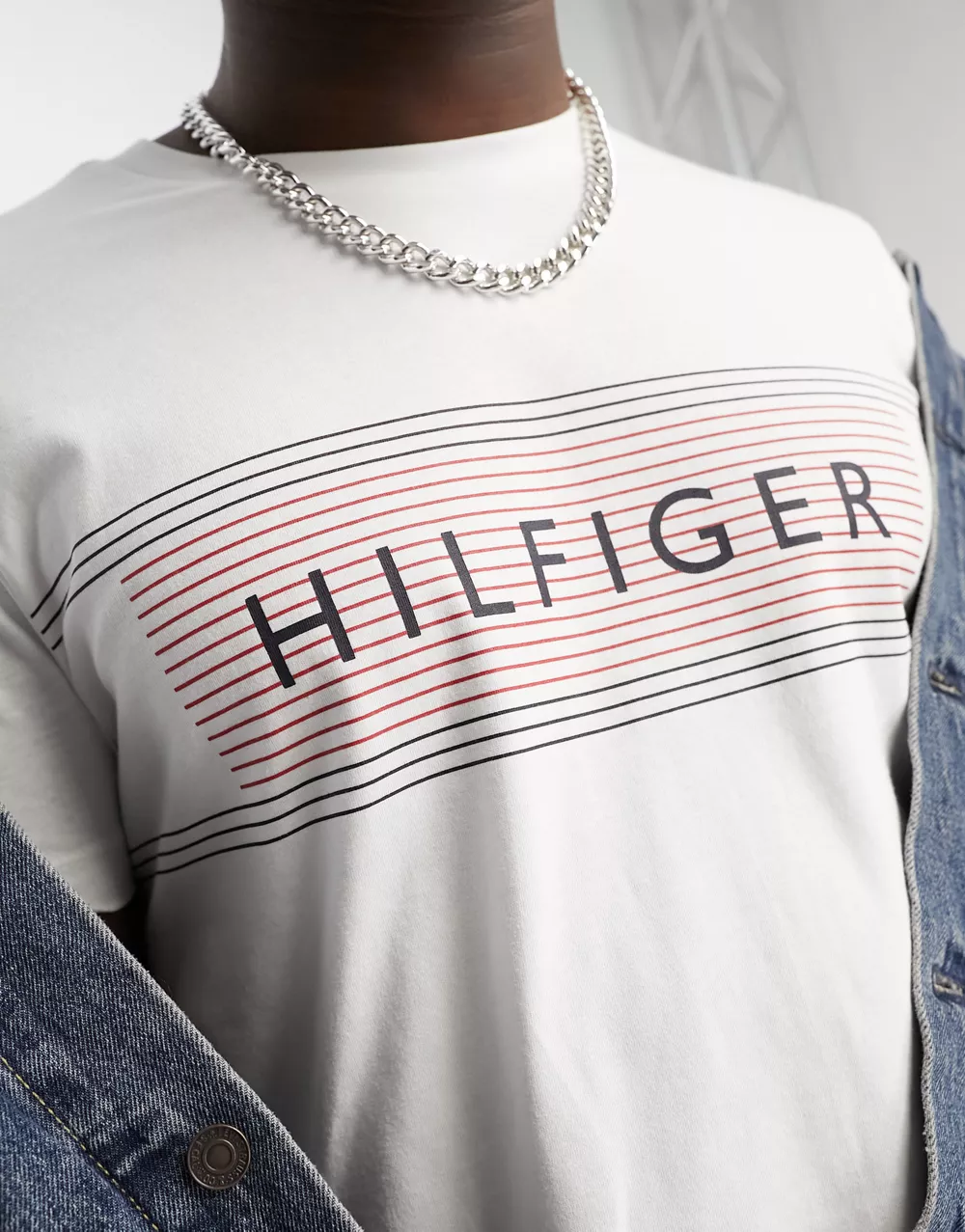 - Tommy Hilfiger chest corp stripe logo t-shirt in white