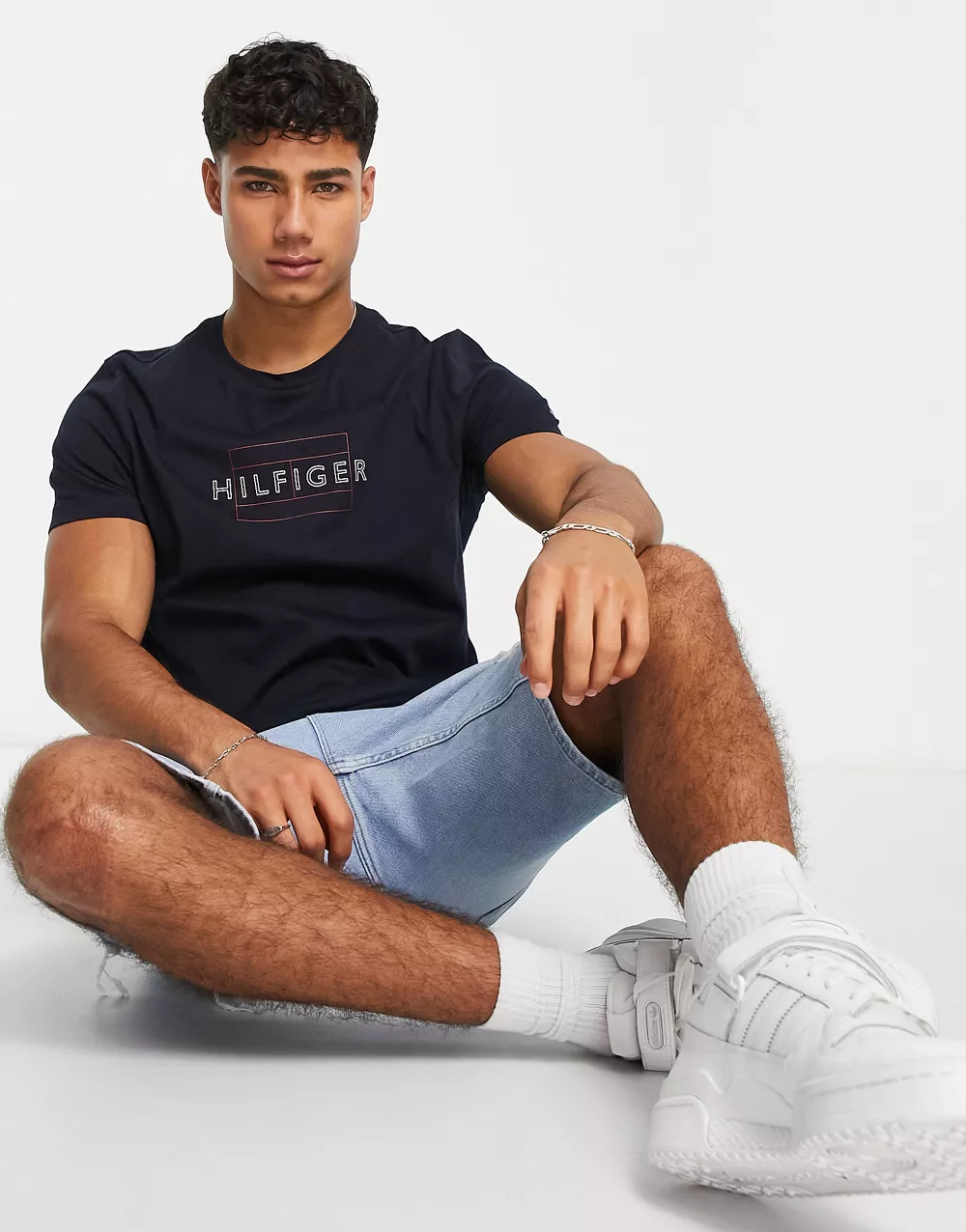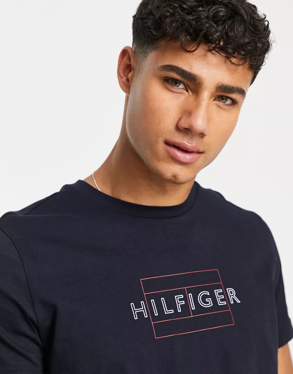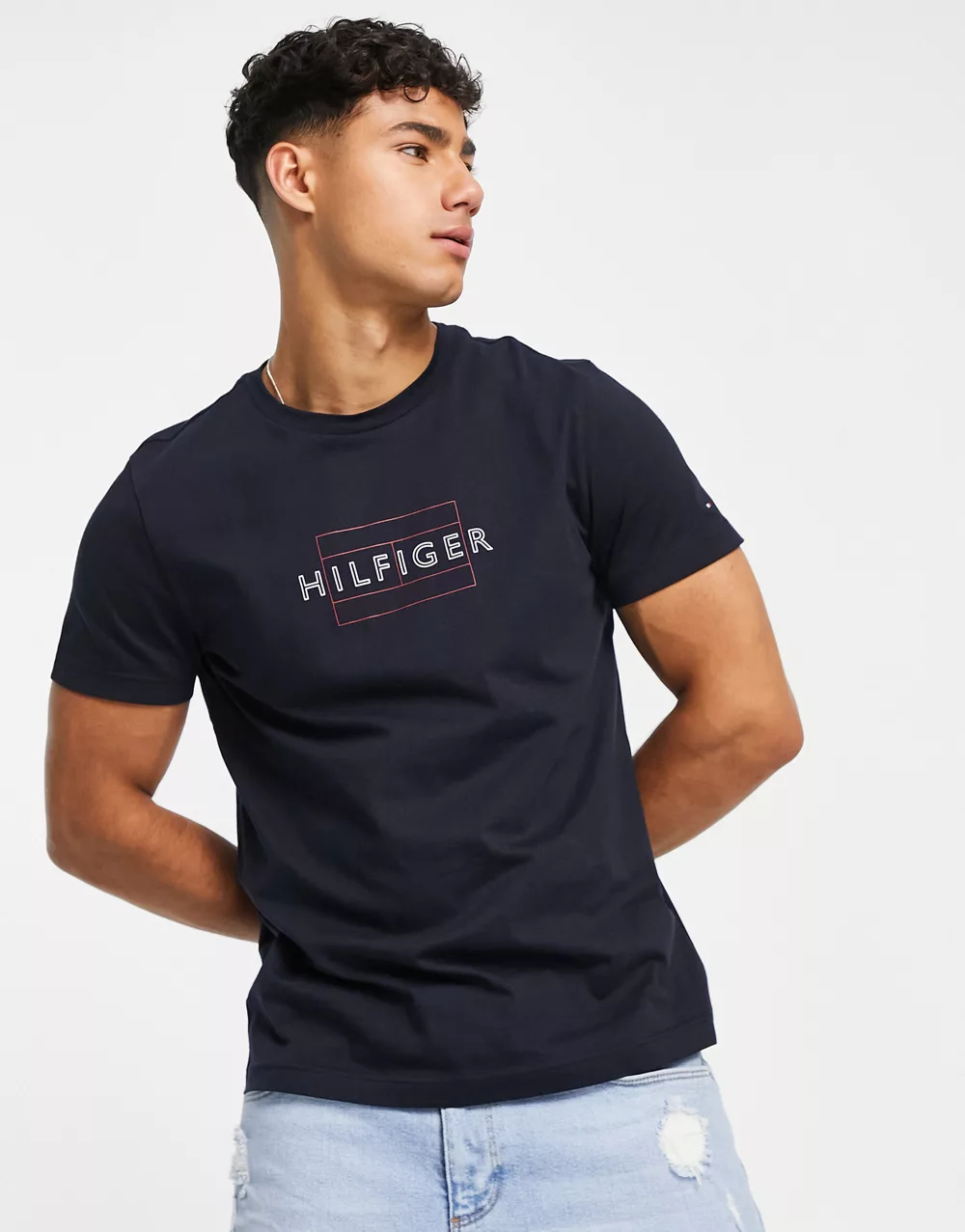 - Tommy Hilfiger cotton linear flag logo t-shirt in navy - NAVY