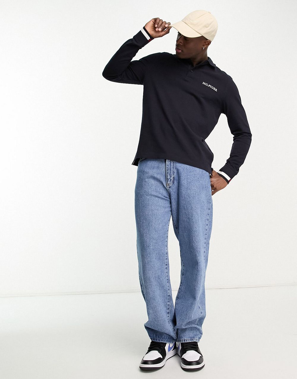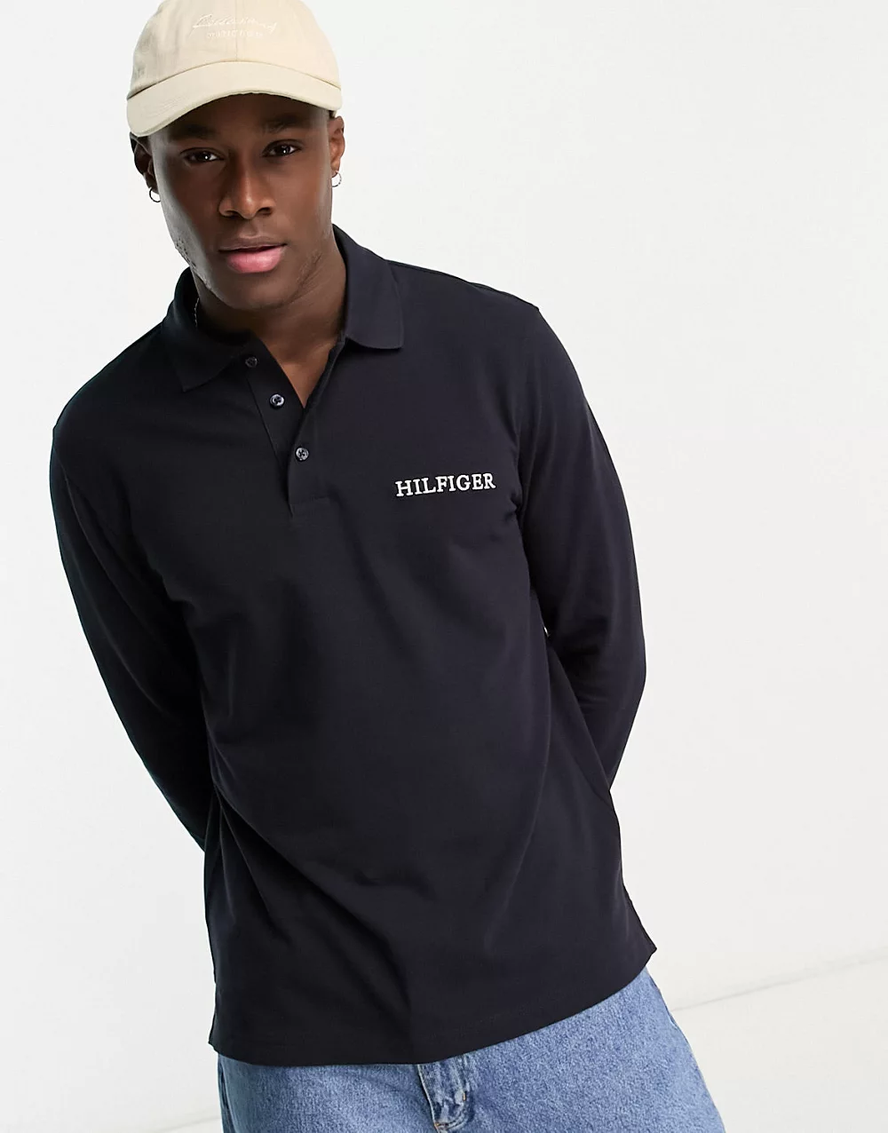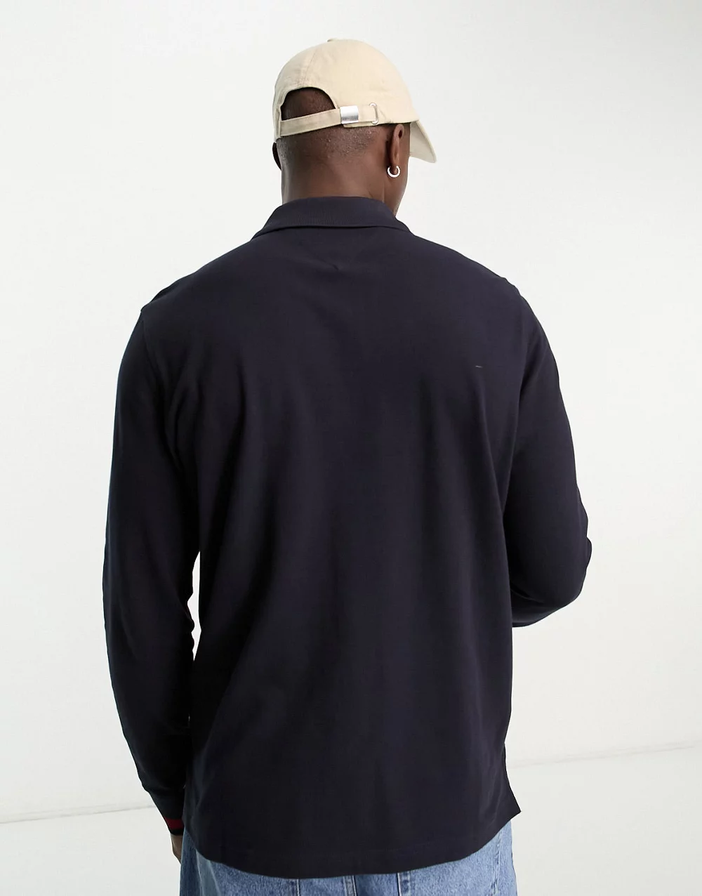 - Tommy Hilfiger flag cuff long sleeve polo in black