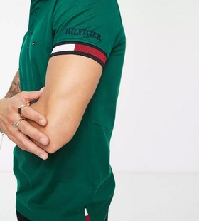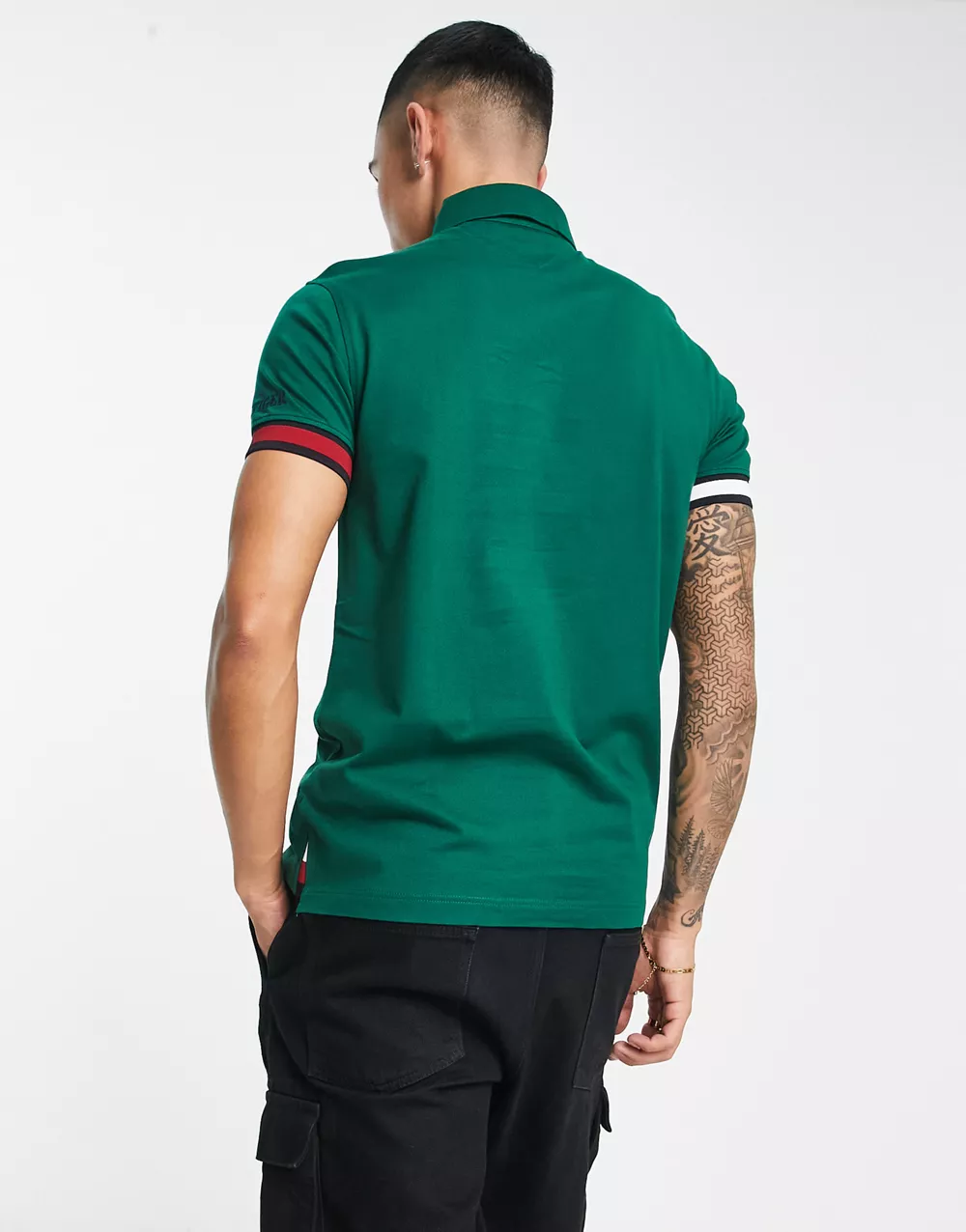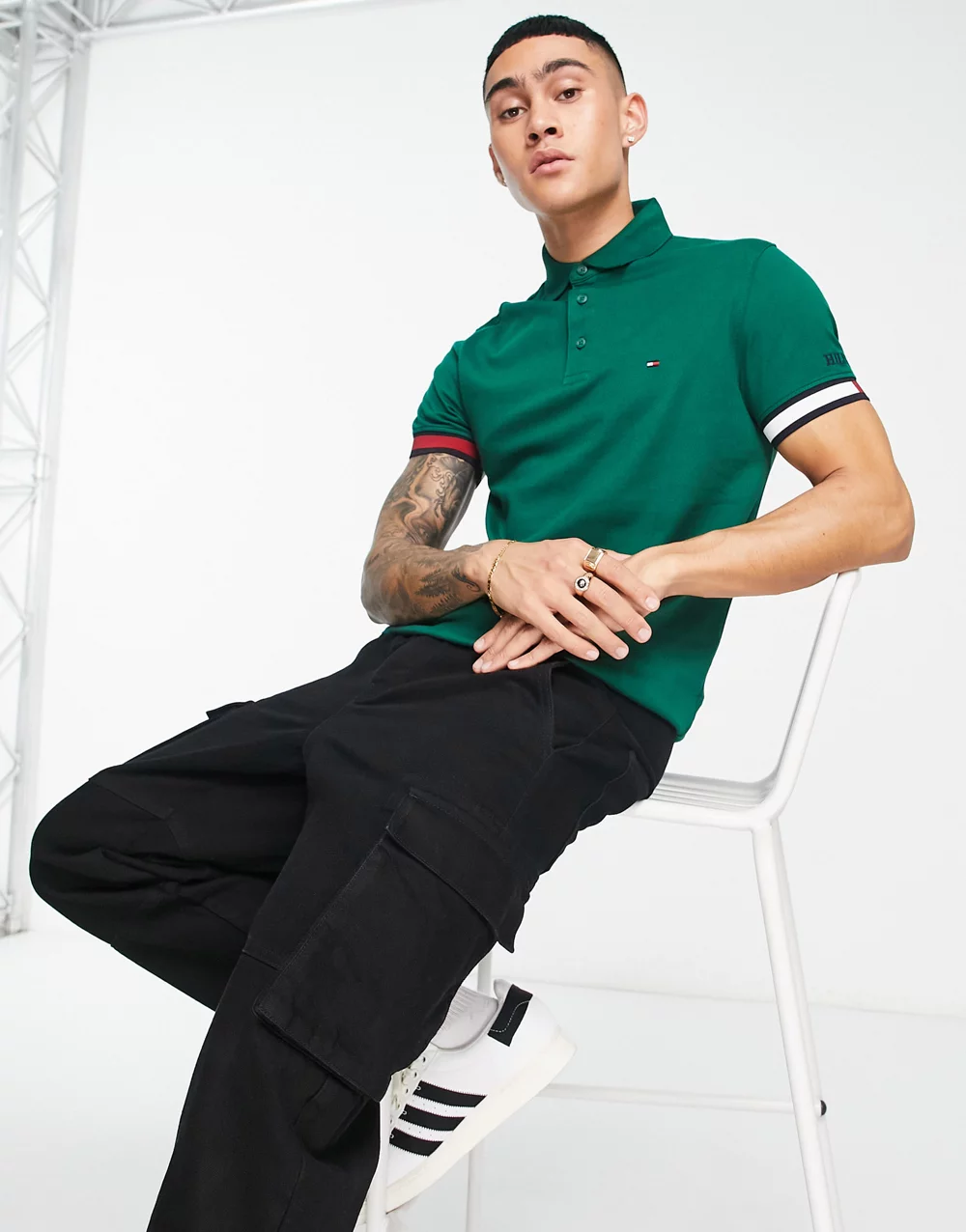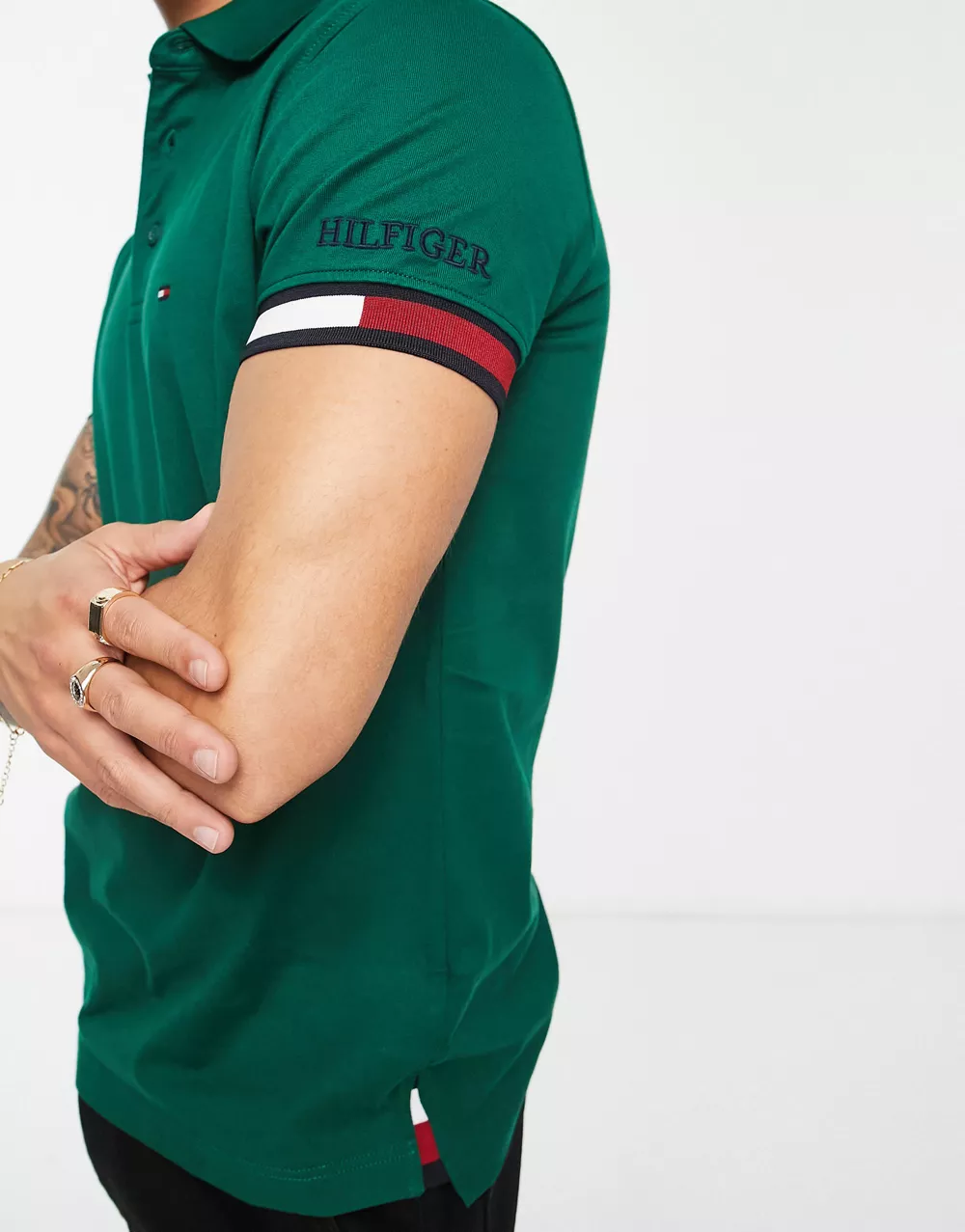- Tommy Hilfiger flag logo cuff sleeve polo shirt in green