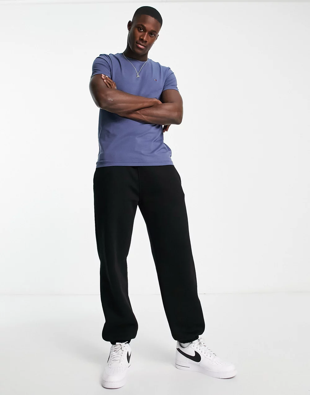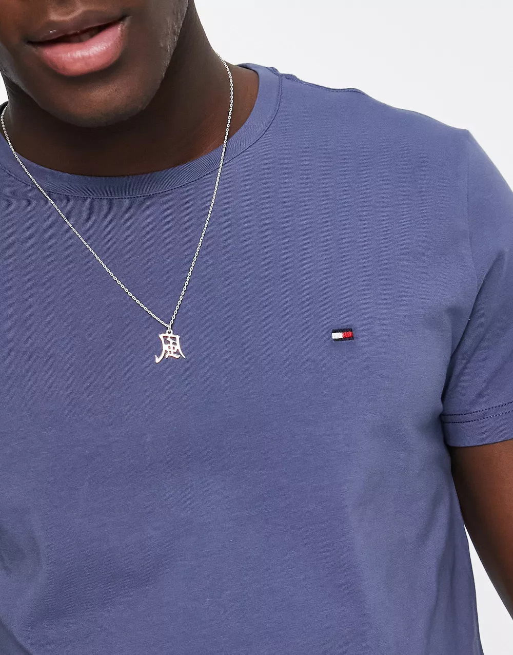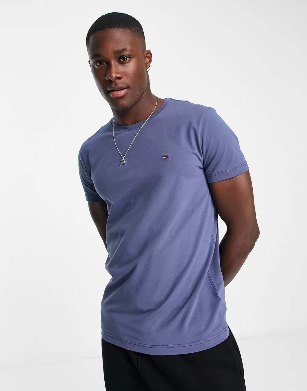 - Tommy Hilfiger flag logo stretch slim fit cotton t-shirt in mid blue