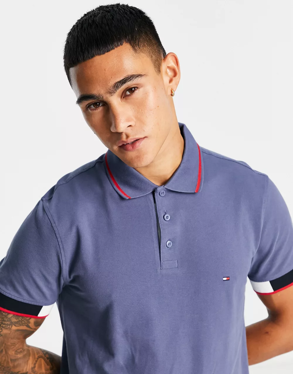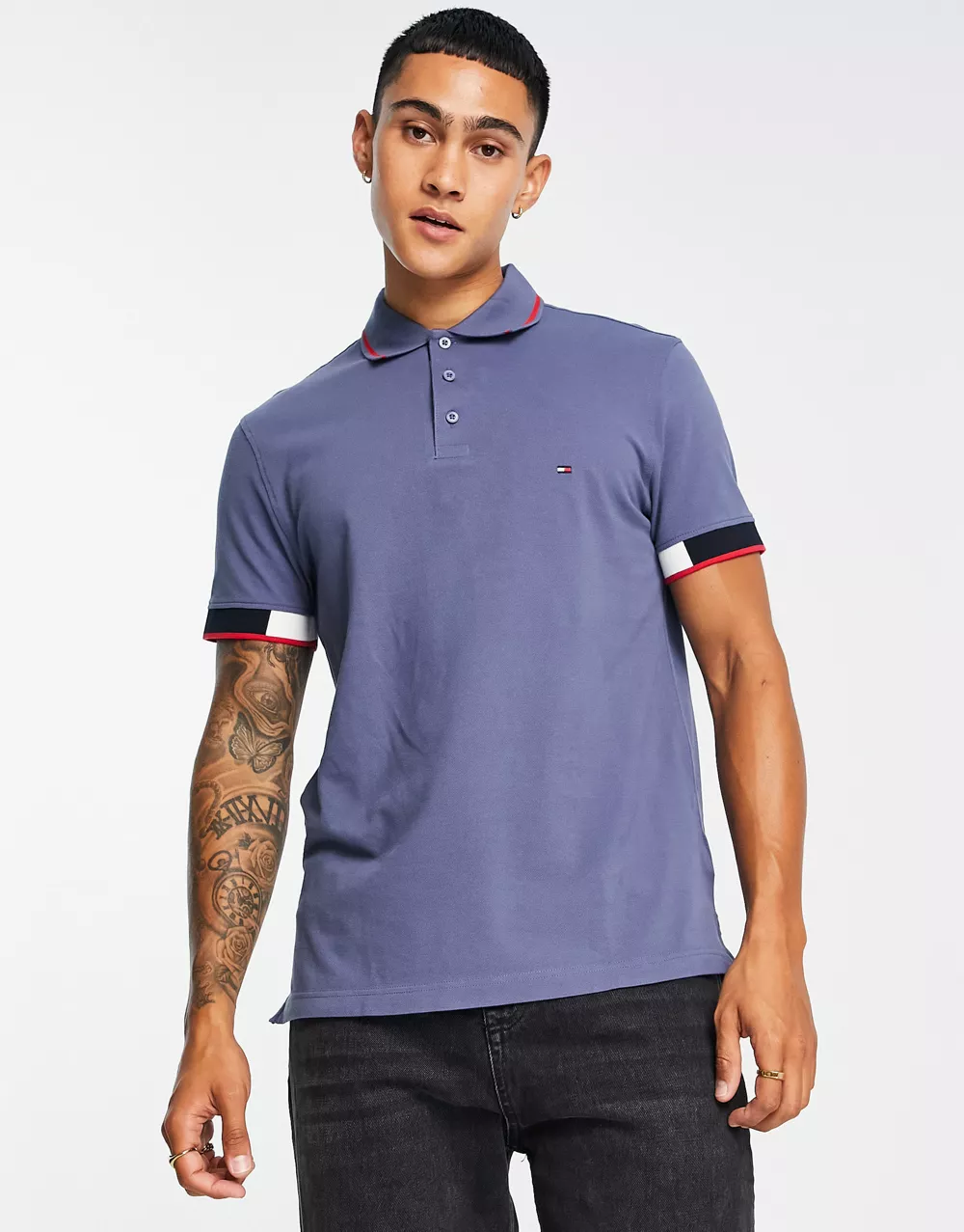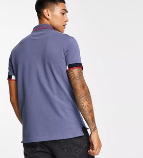 - Tommy Hilfiger icon flag placket and cuff slim fit polo in dark blue