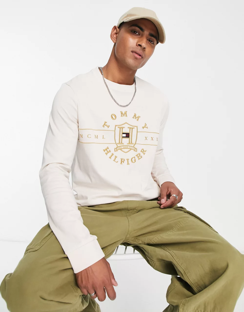 - Tommy Hilfiger icon logo long sleeve t-shirt in white