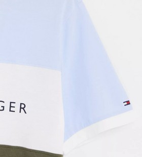 - Tommy Hilfiger loungewear colour block t-shirt in khaki and blue