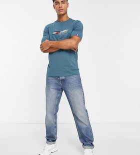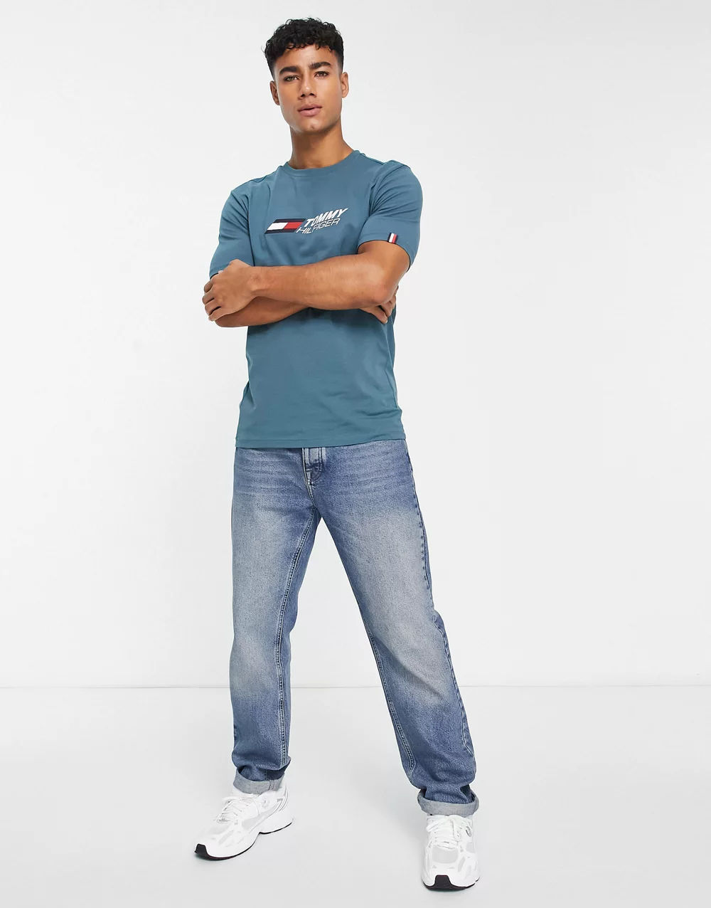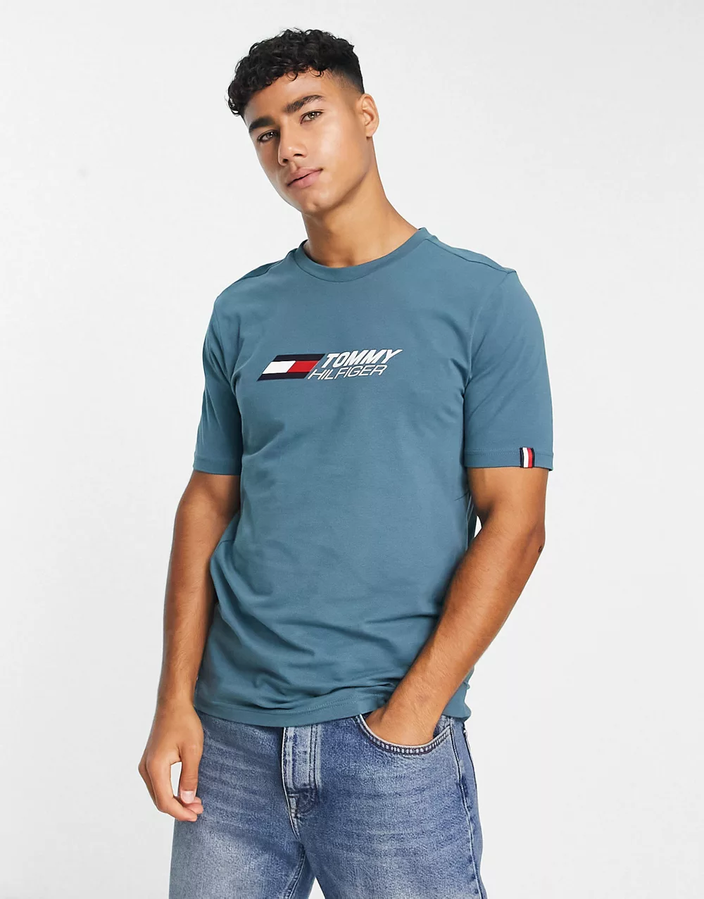 - Tommy Hilfiger Performance essentials cotton big logo co-ord t-shirt in mid blue