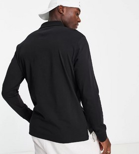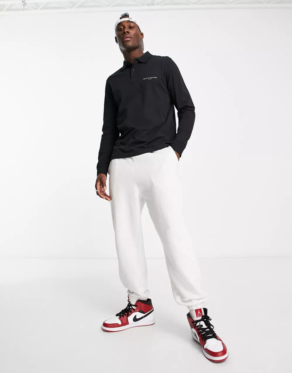 - Tommy Hilfiger script logo cotton jersey long sleeve polo in black