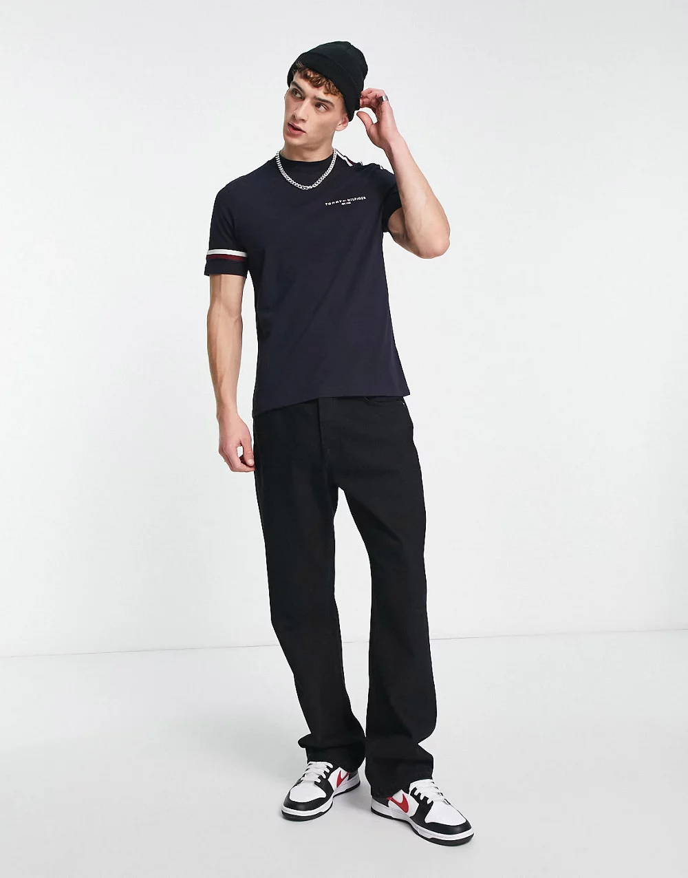 - Tommy Hilfiger stripe short sleeve t-shirt in black