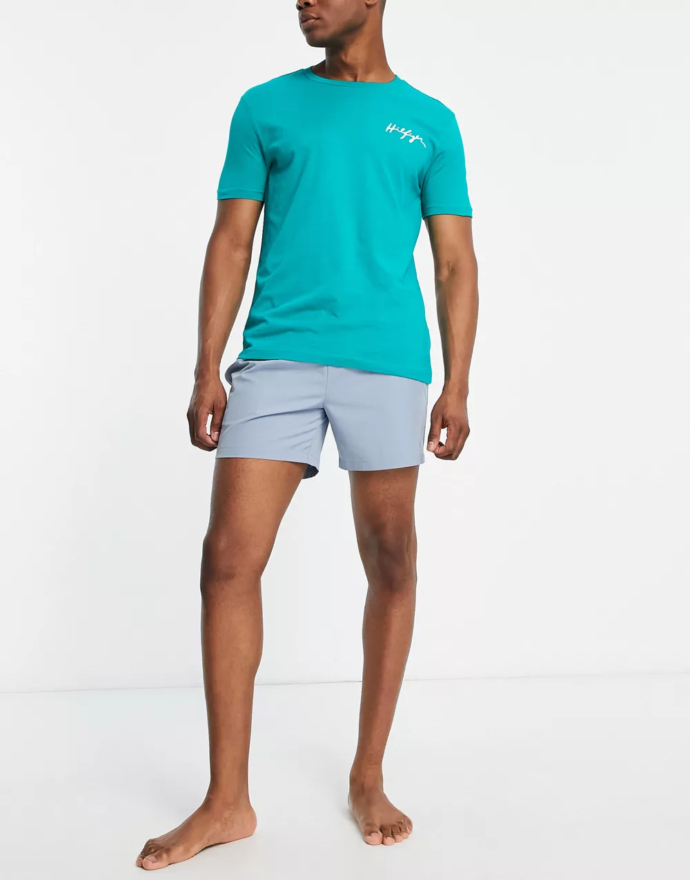 Tommy Hilfiger cotton multi logo t-shirt in light blue - LBLUE