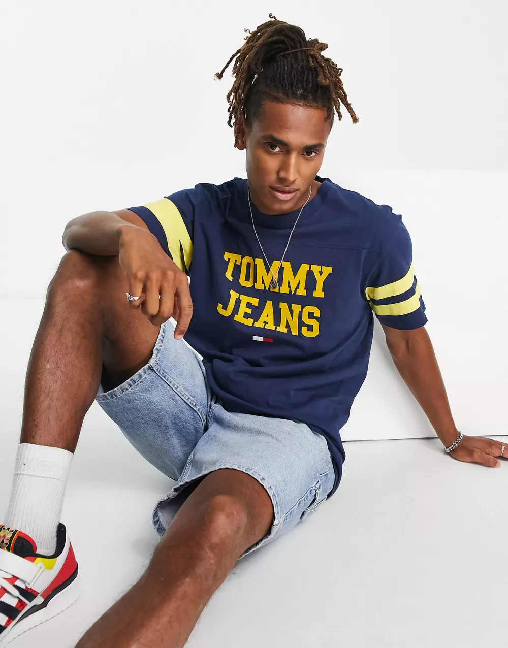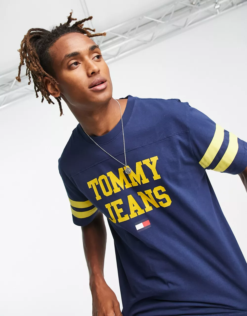 - Tommy Jeans acid capsule cotton ringer t-shirt in blue - NAVY