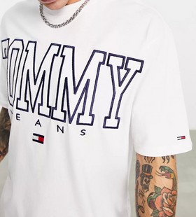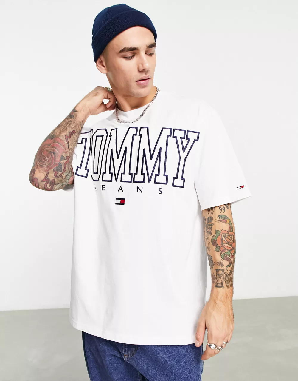 - Tommy Jeans ASOS exclusive cotton heritage capsule logo front t-shirt skate fit in white