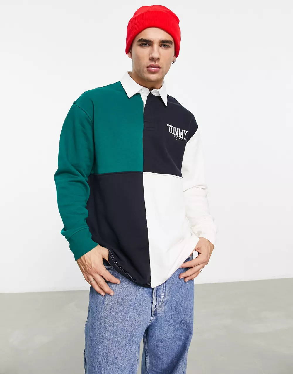 - Tommy Jeans ASOS exclusive heritage capsule colourblock rugby polo skater fit in navy