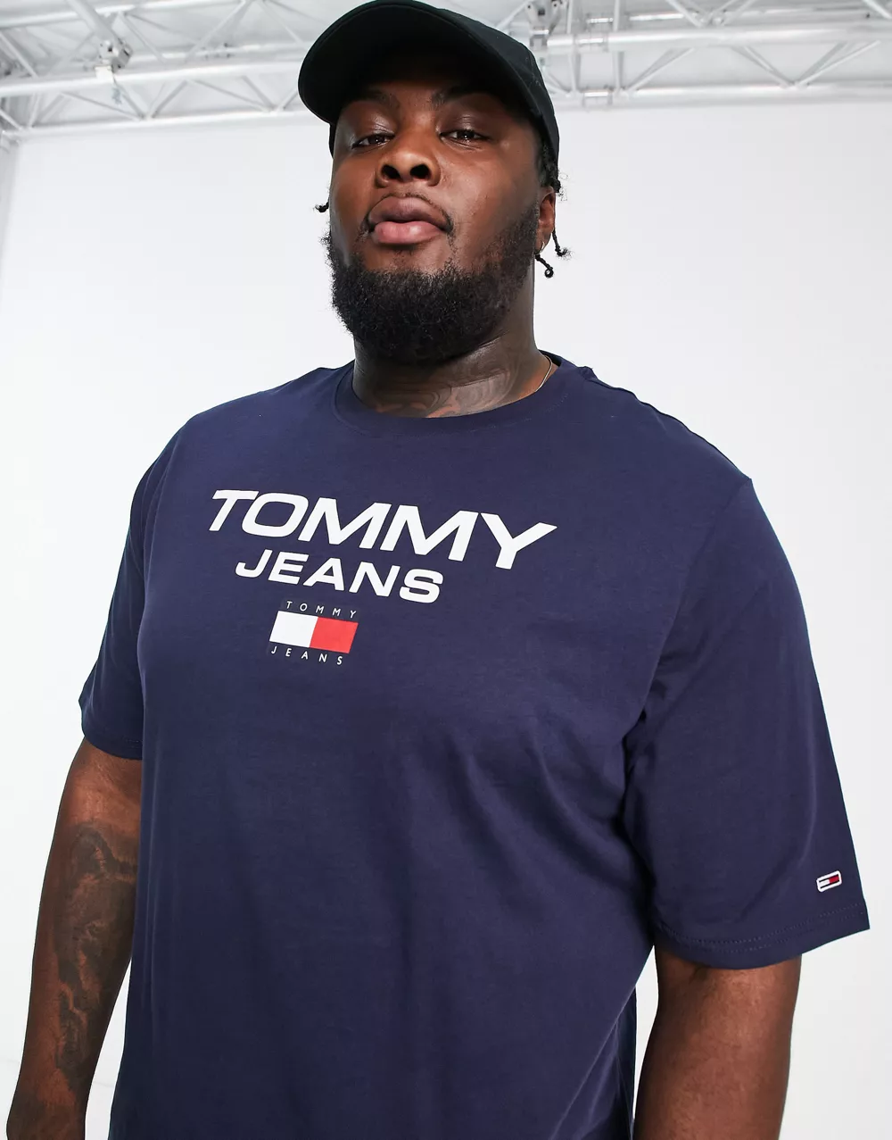 - Tommy Jeans Big & Tall flag logo t-shirt in navy