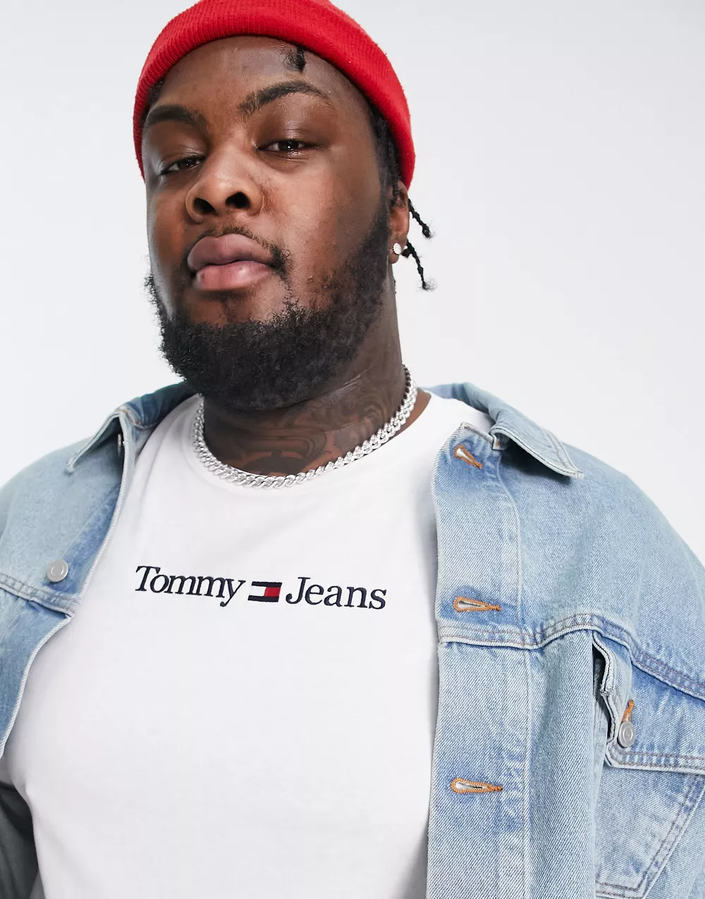 - Tommy Jeans Big & Tall linear logo t-shirt in white