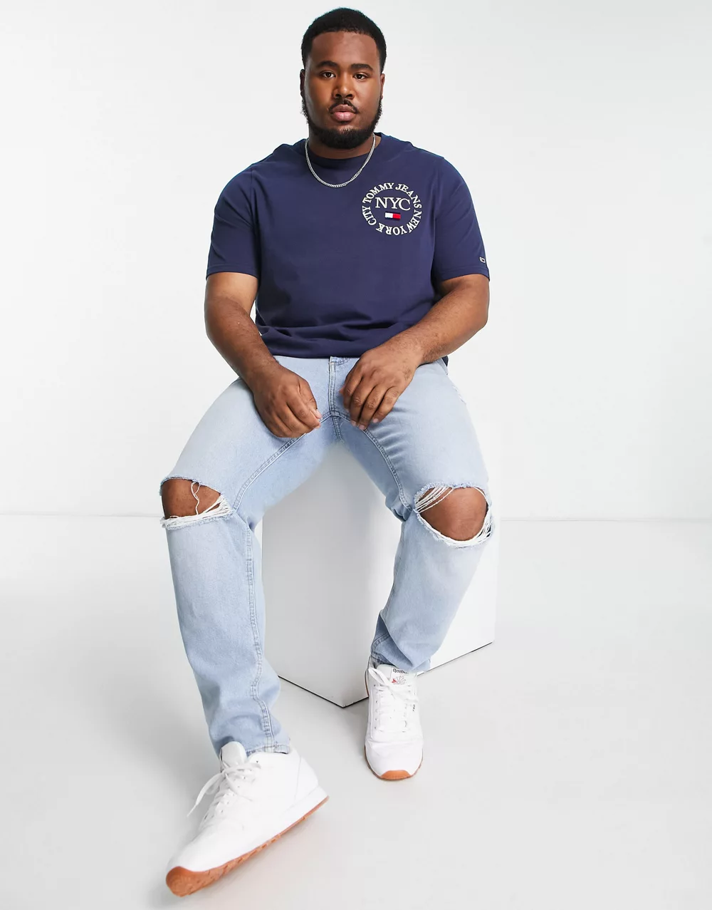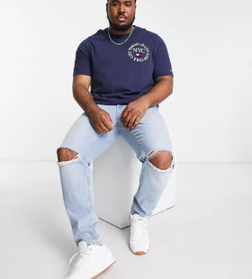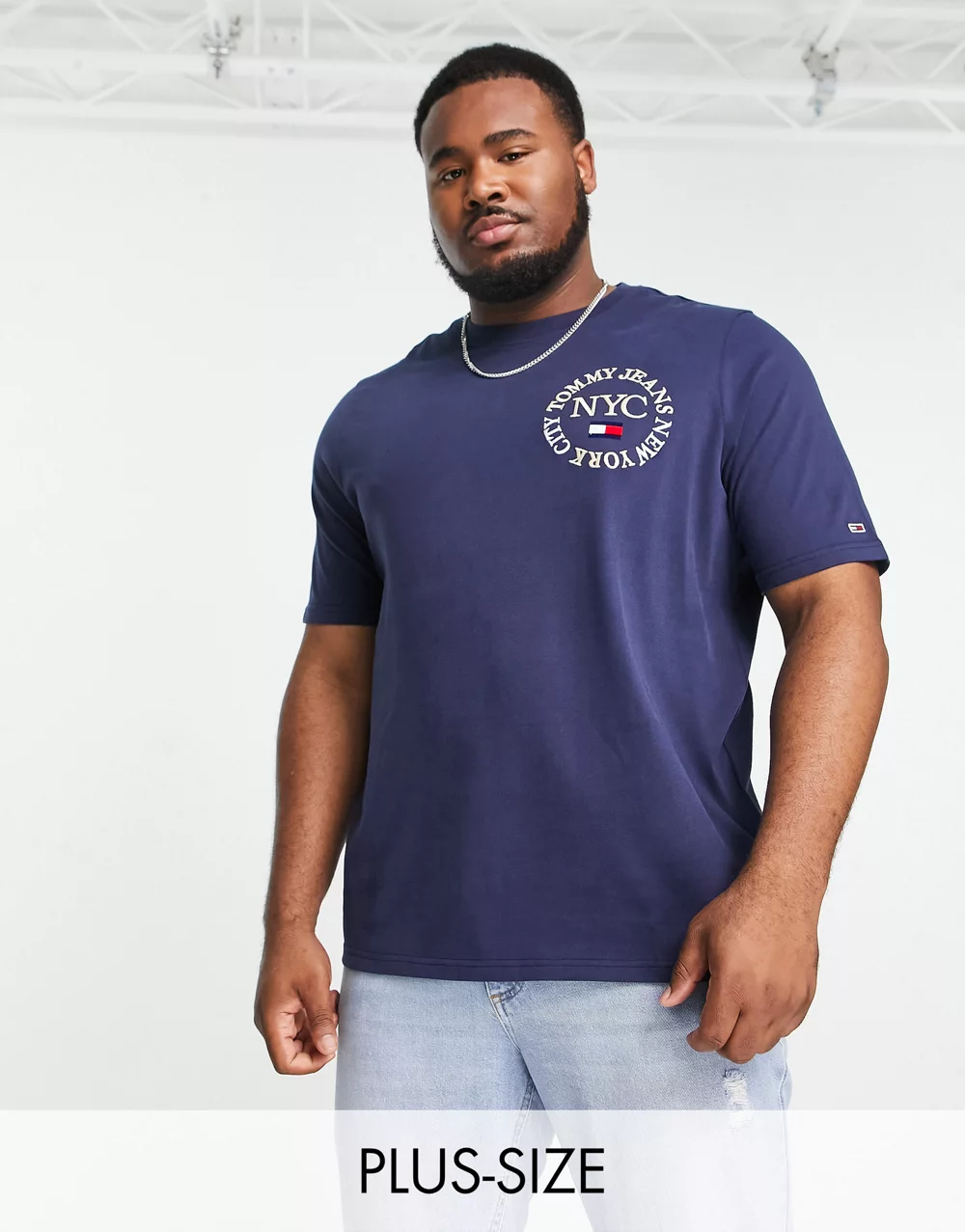 - Tommy Jeans Big & Tall timeless logo cotton t-shirt in navy