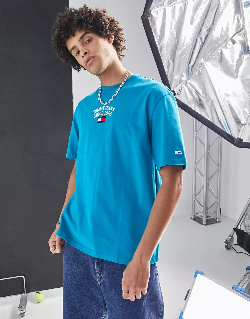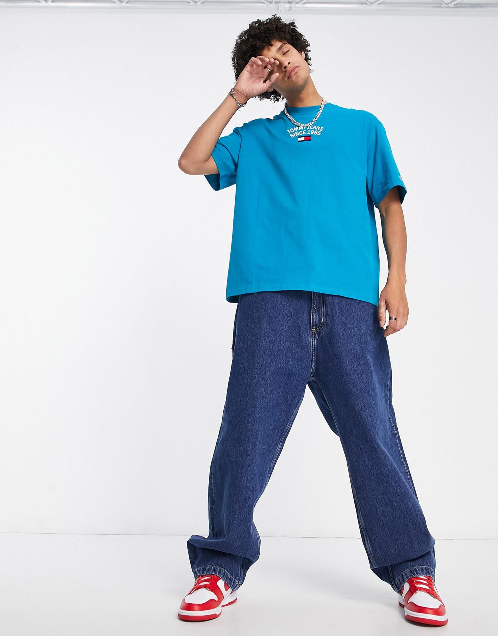 - Tommy Jeans boxy fit central logo cotton t-shirt in blue
