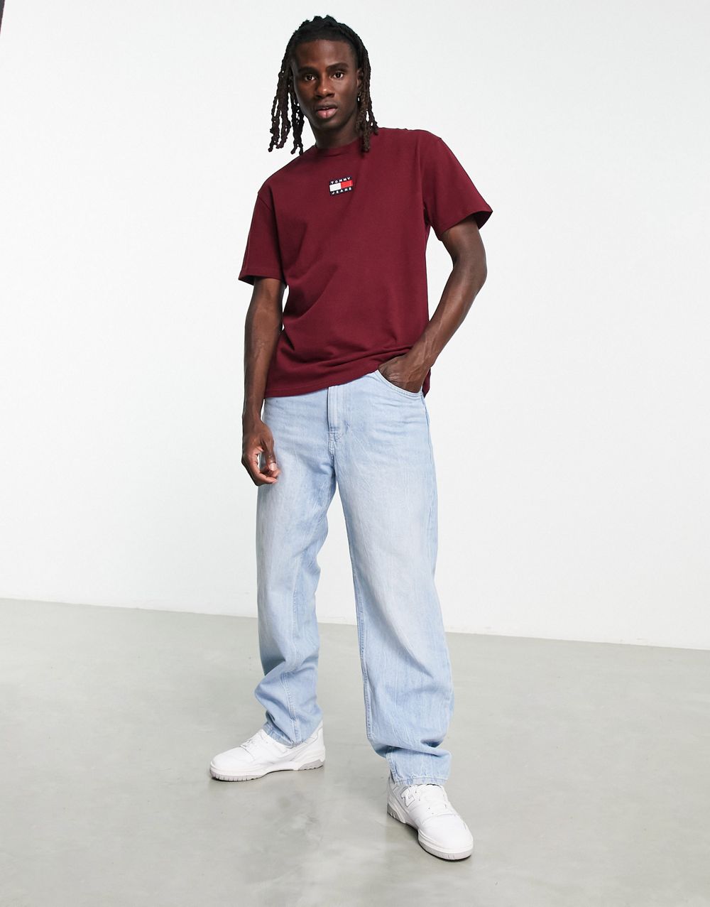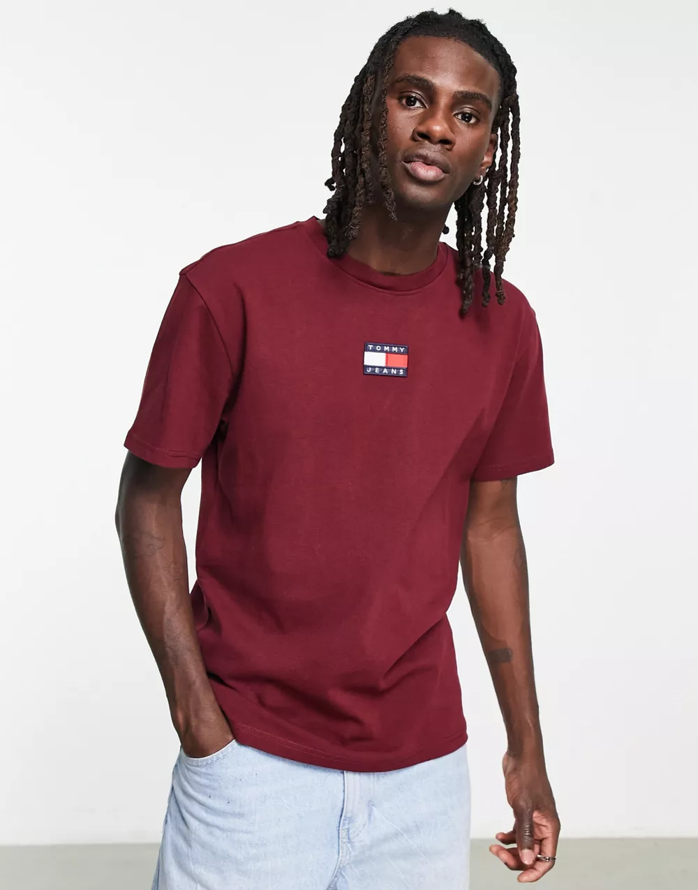 - Tommy Jeans central badge logo t-shirt in burgundy