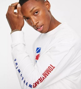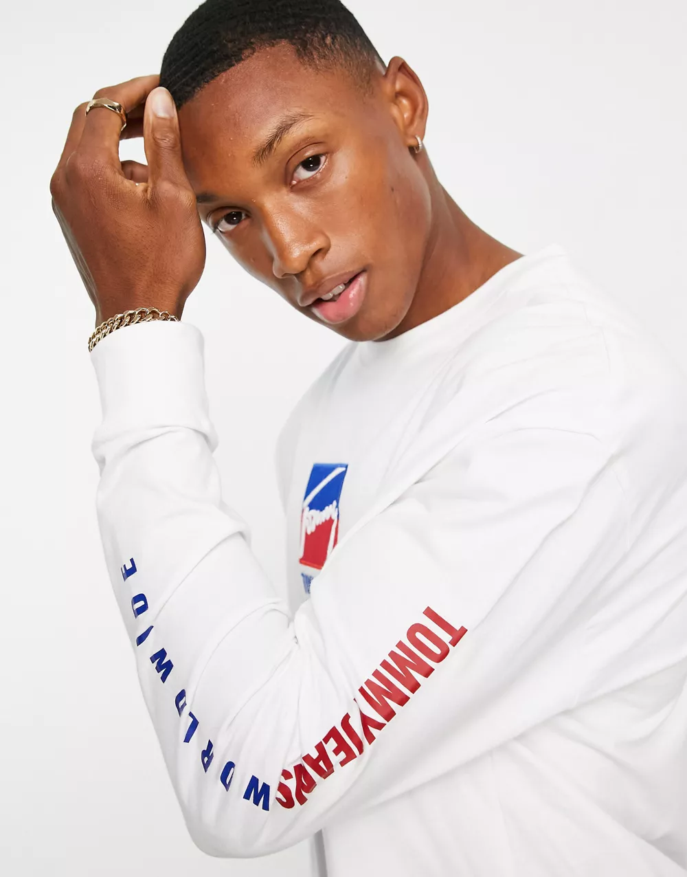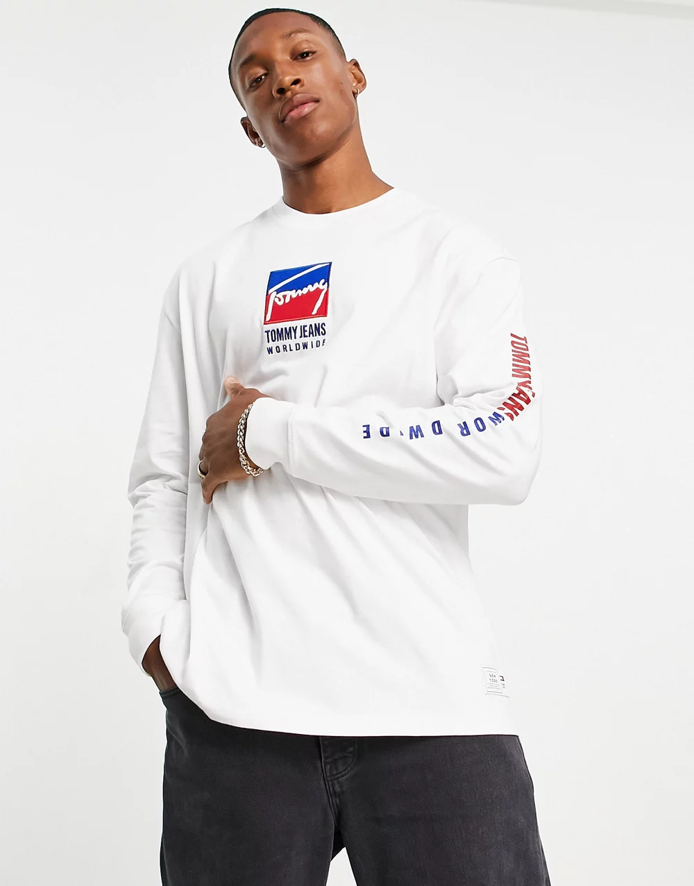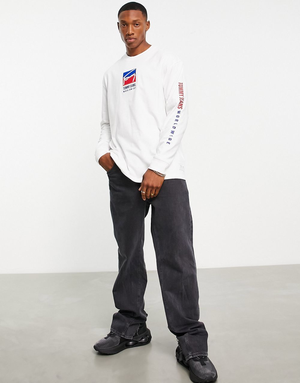 - Tommy Jeans central box logo long sleeve t-shirt in white