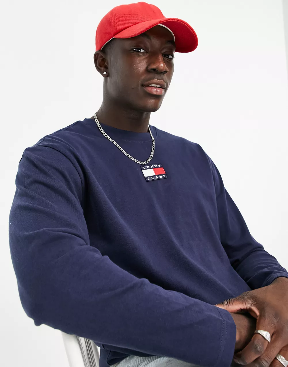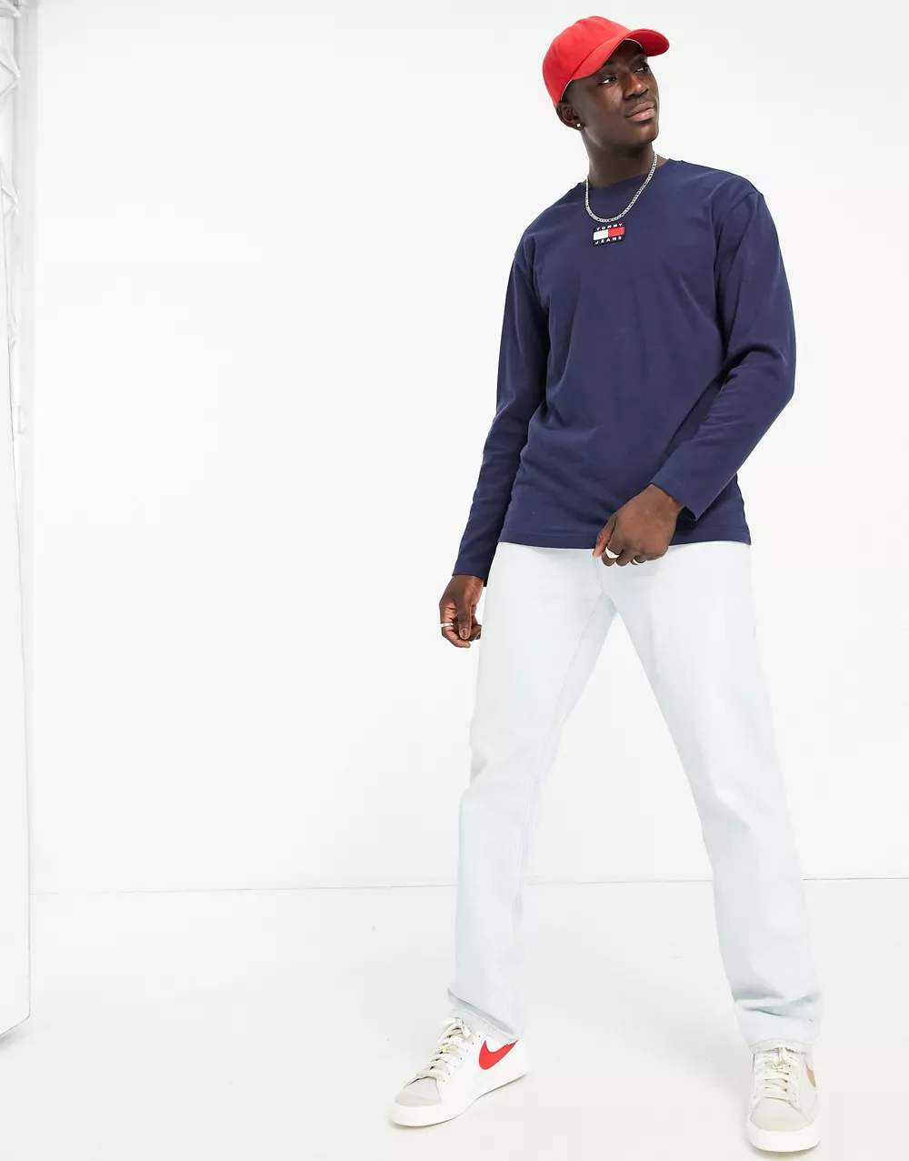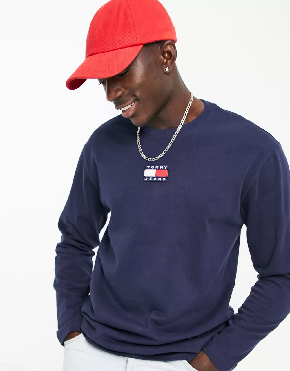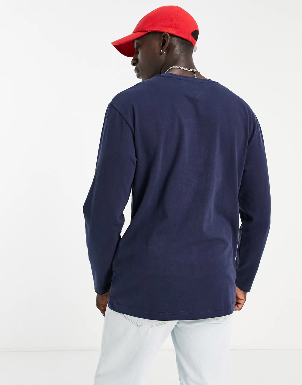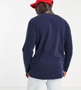 - Tommy Jeans centre flag logo long sleeve t-shirt in navy