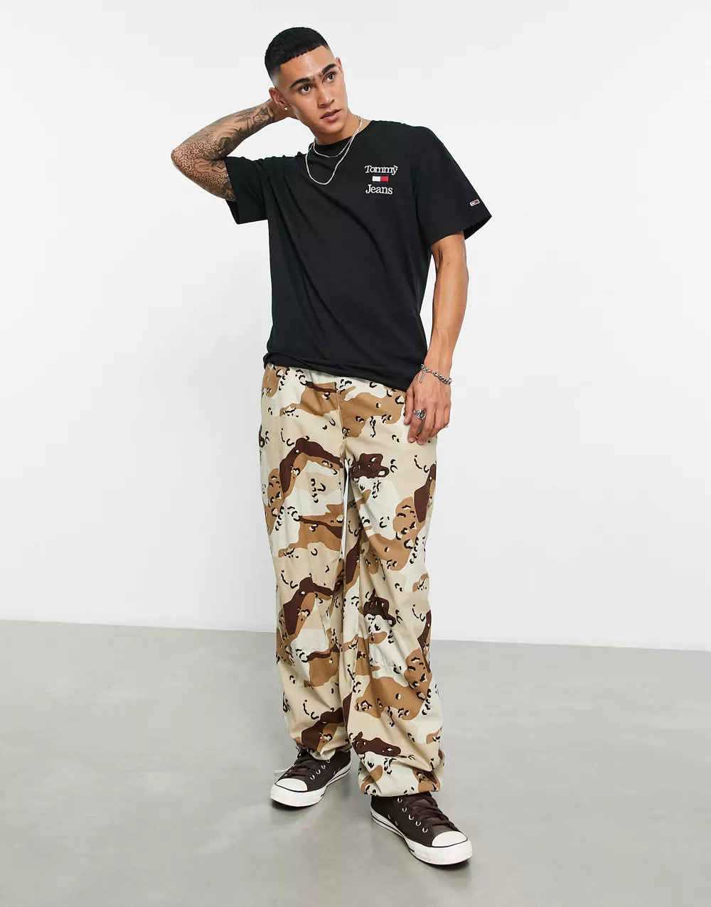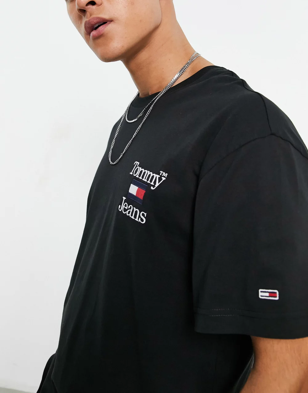 - Tommy Jeans chest flag logo relaxed fit t-shirt in black