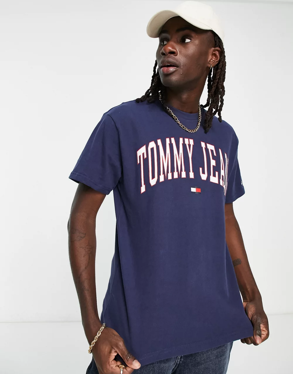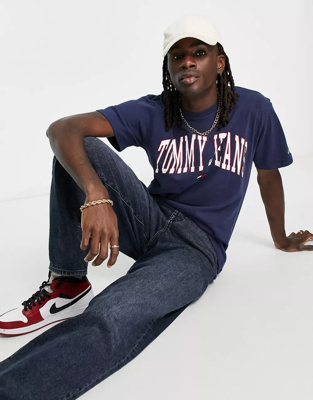 - Tommy Jeans classic fit collegiate logo t-shirt in navy