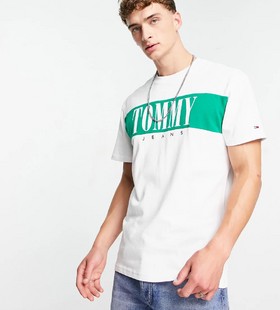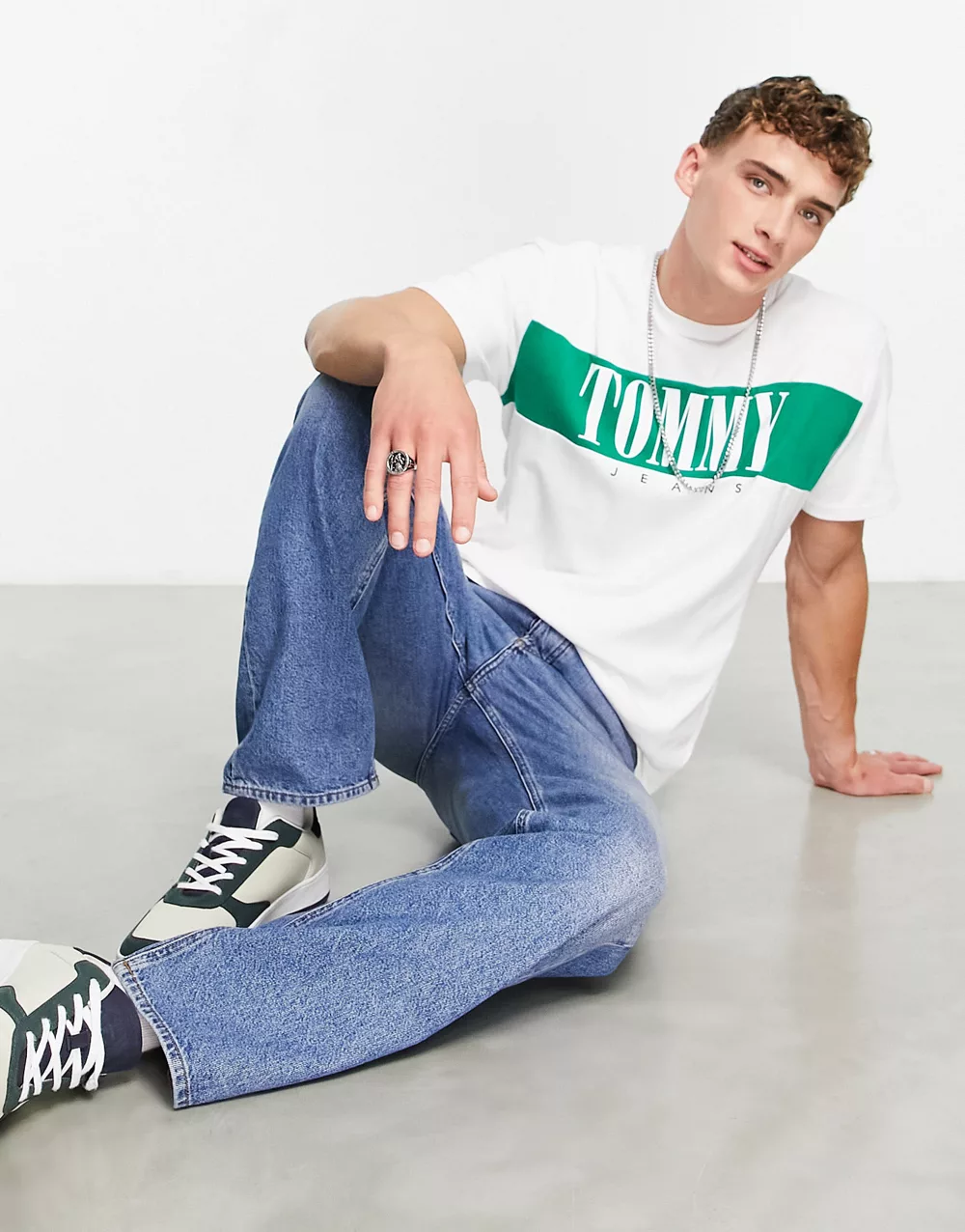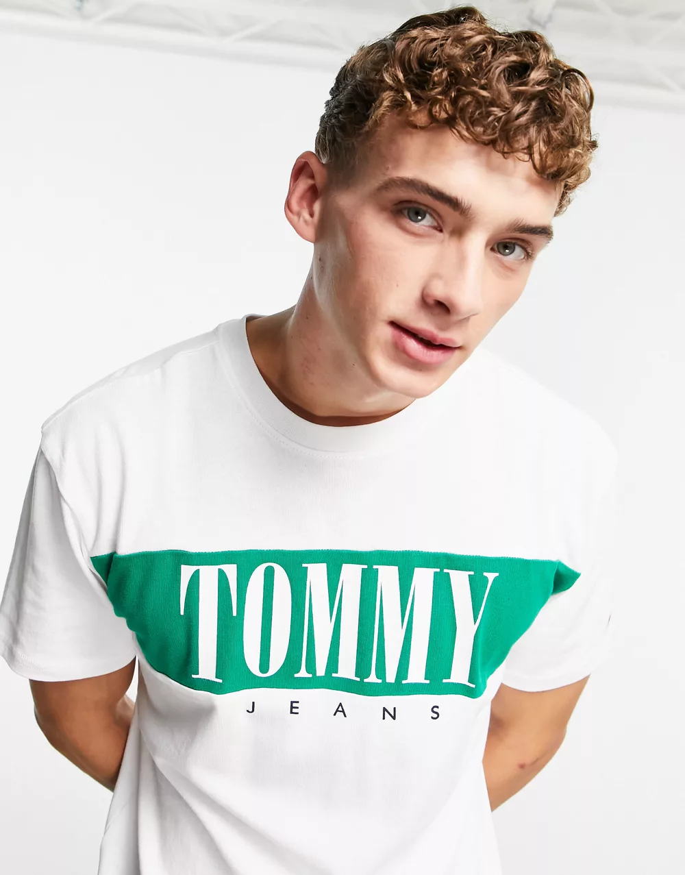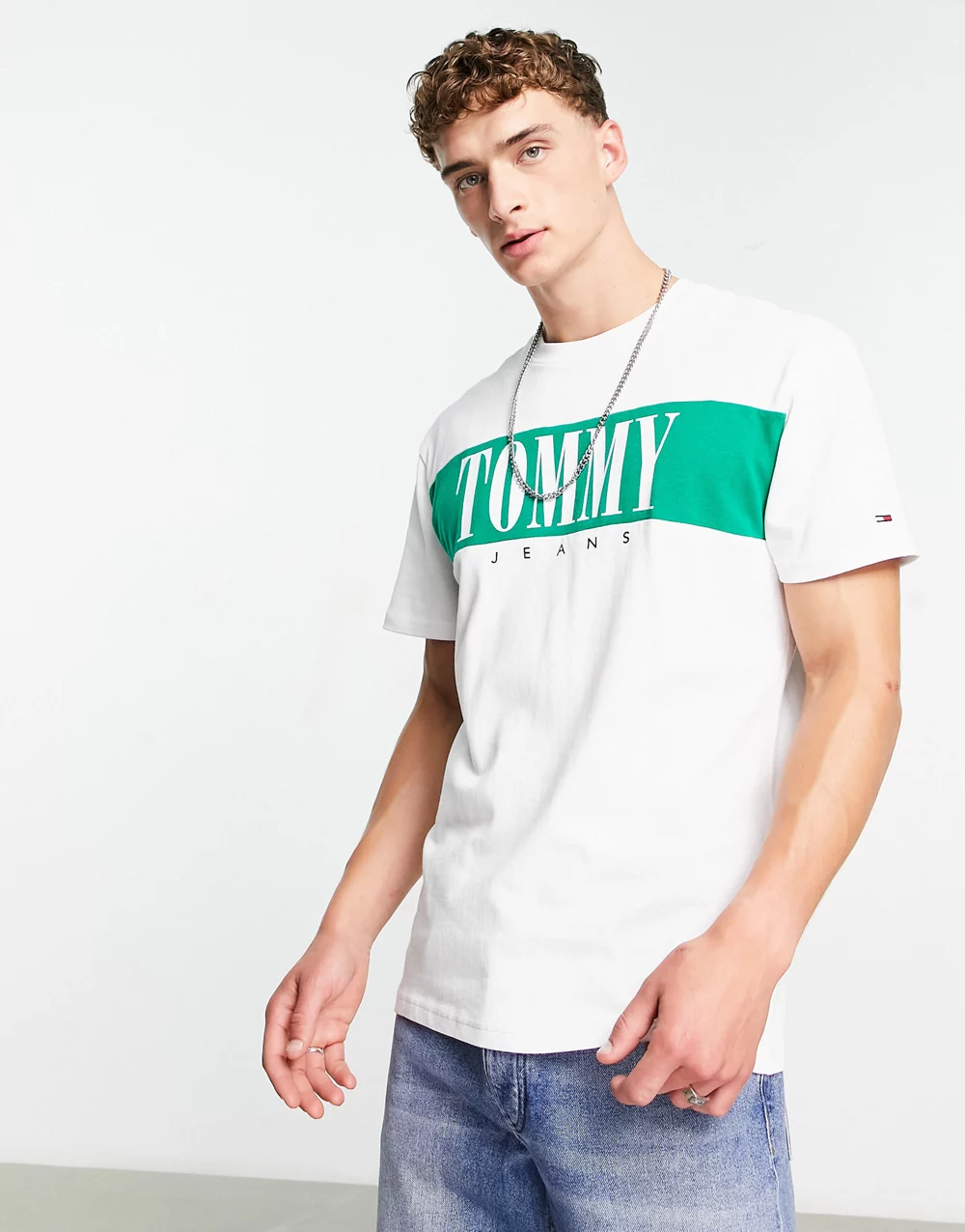 - Tommy Jeans classic fit colourblock serif logo t-shirt in white