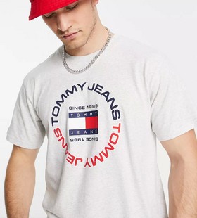 - Tommy Jeans cotton athletic circle logo relaxed fit t-shirt in grey marl
