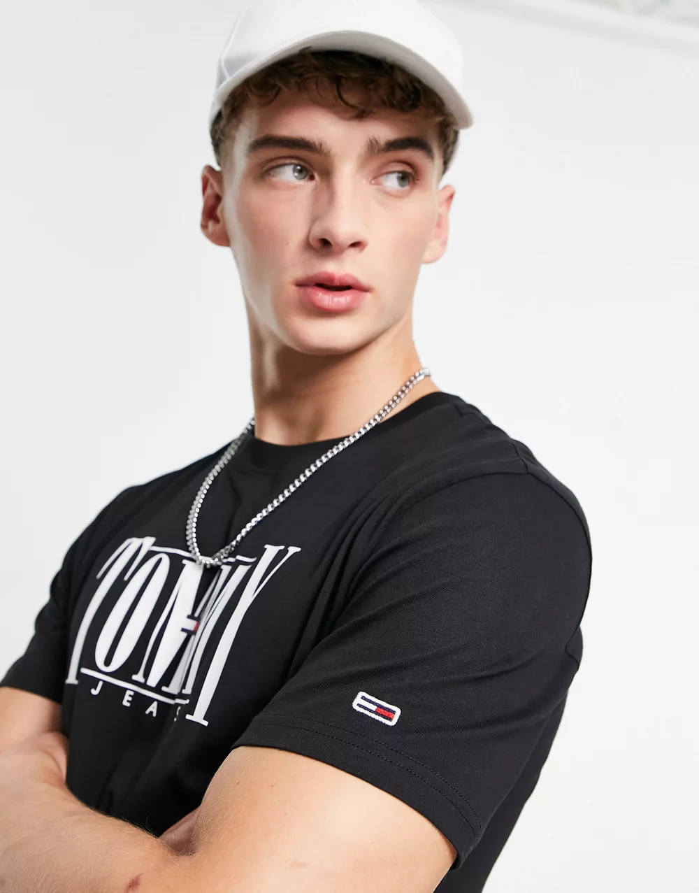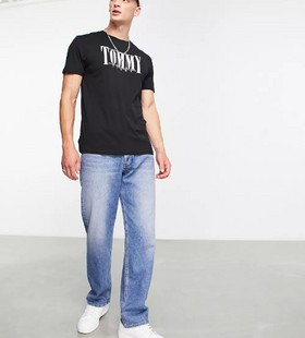 - Tommy Jeans cotton classic fit serif logo t-shirt in black