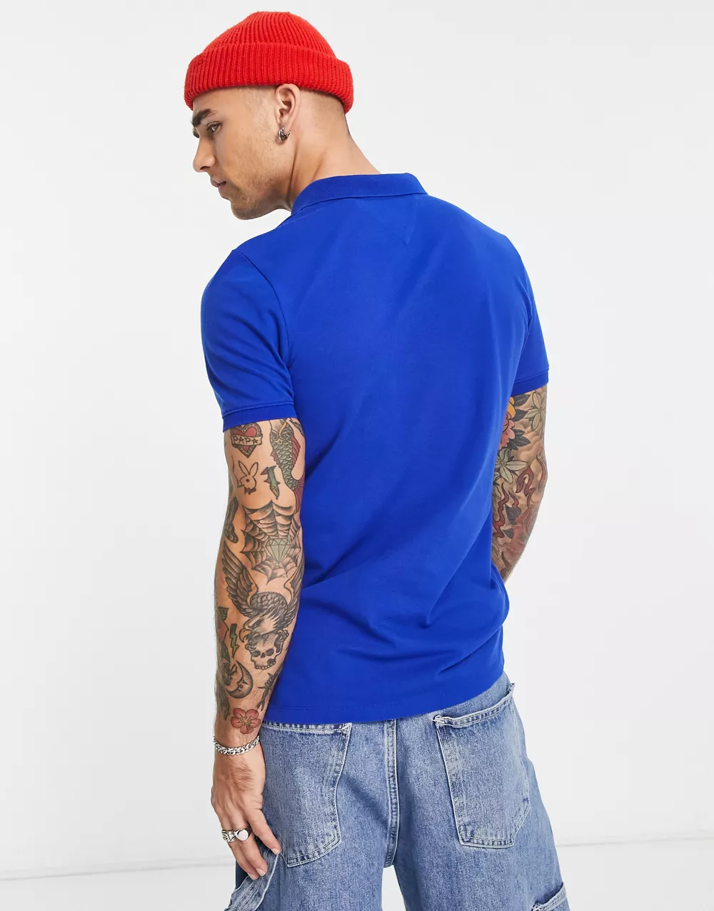 - Tommy Jeans cotton flag logo stretch polo shirt in blue