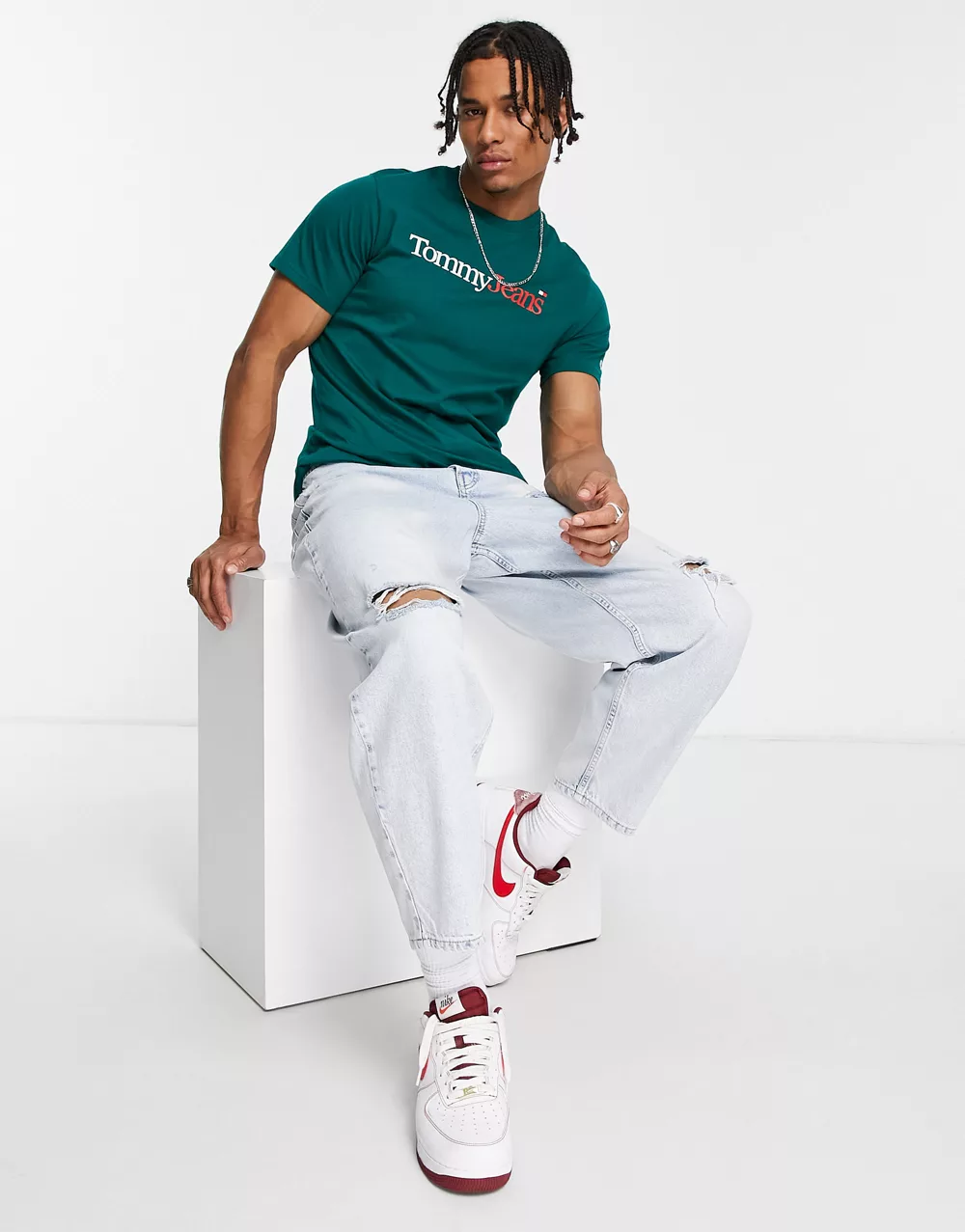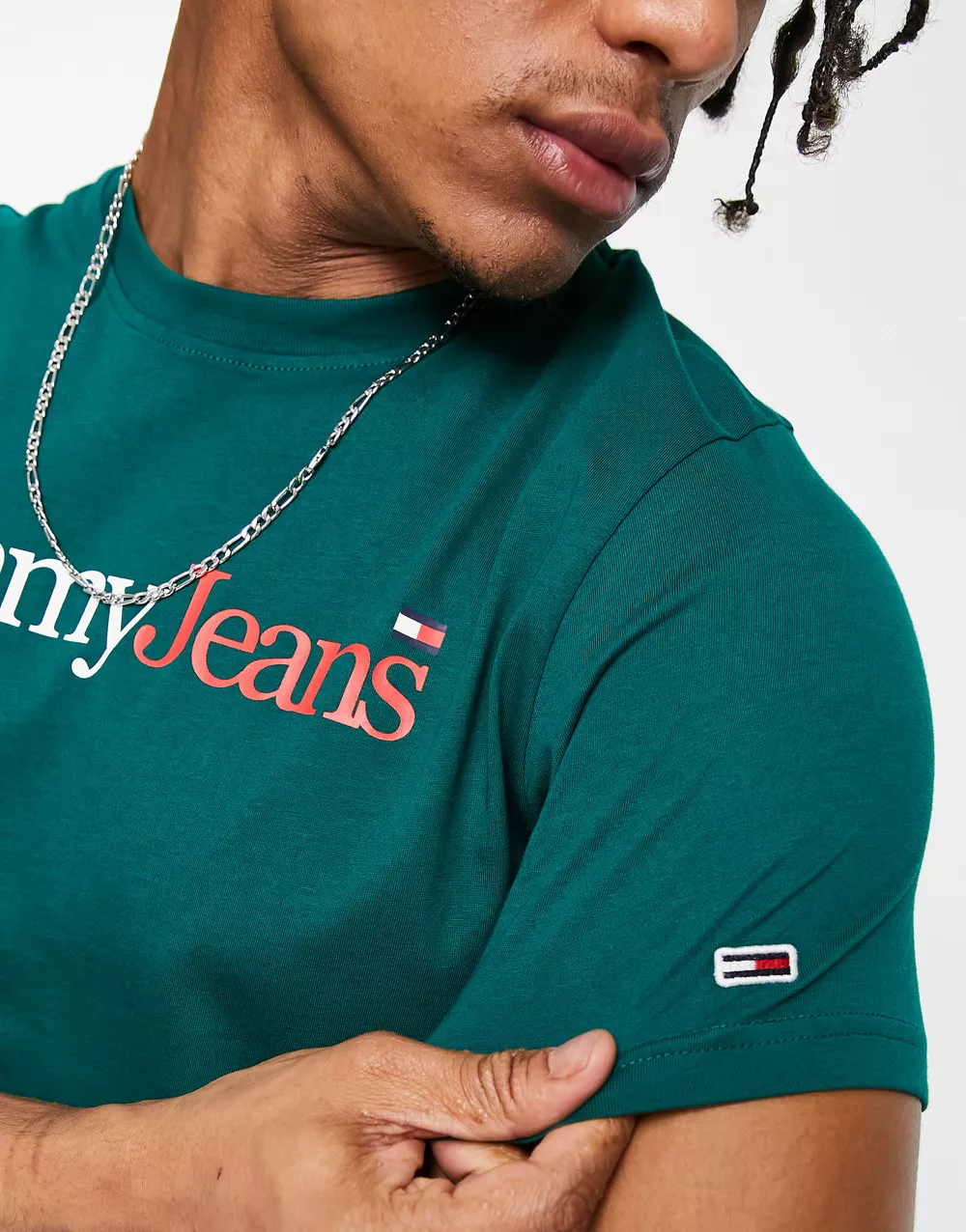- Tommy Jeans cotton multi logo t-shirt in dark green
