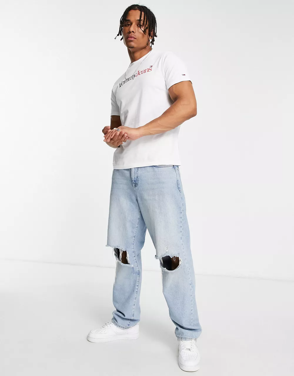 - Tommy Jeans cotton multi logo t-shirt in white