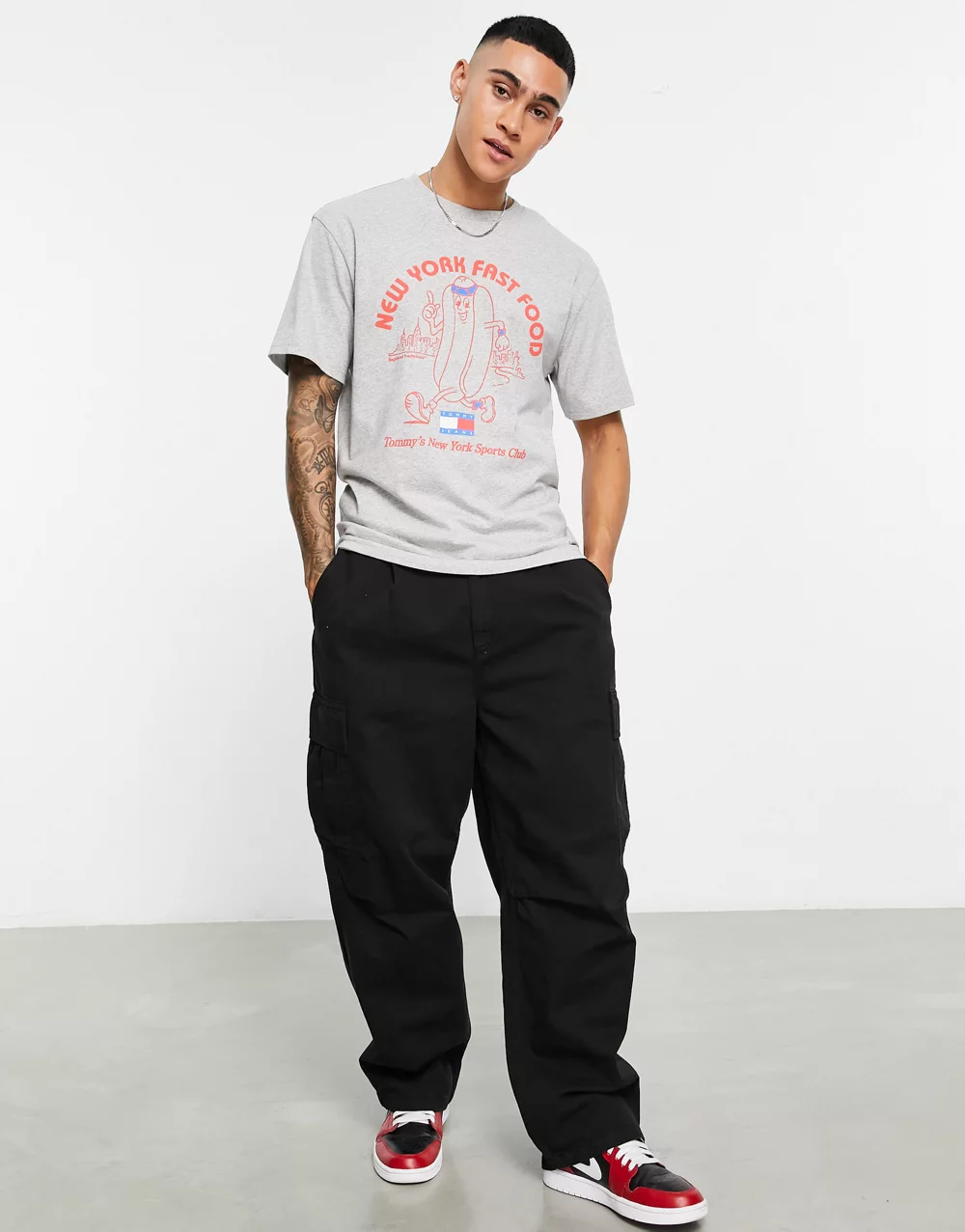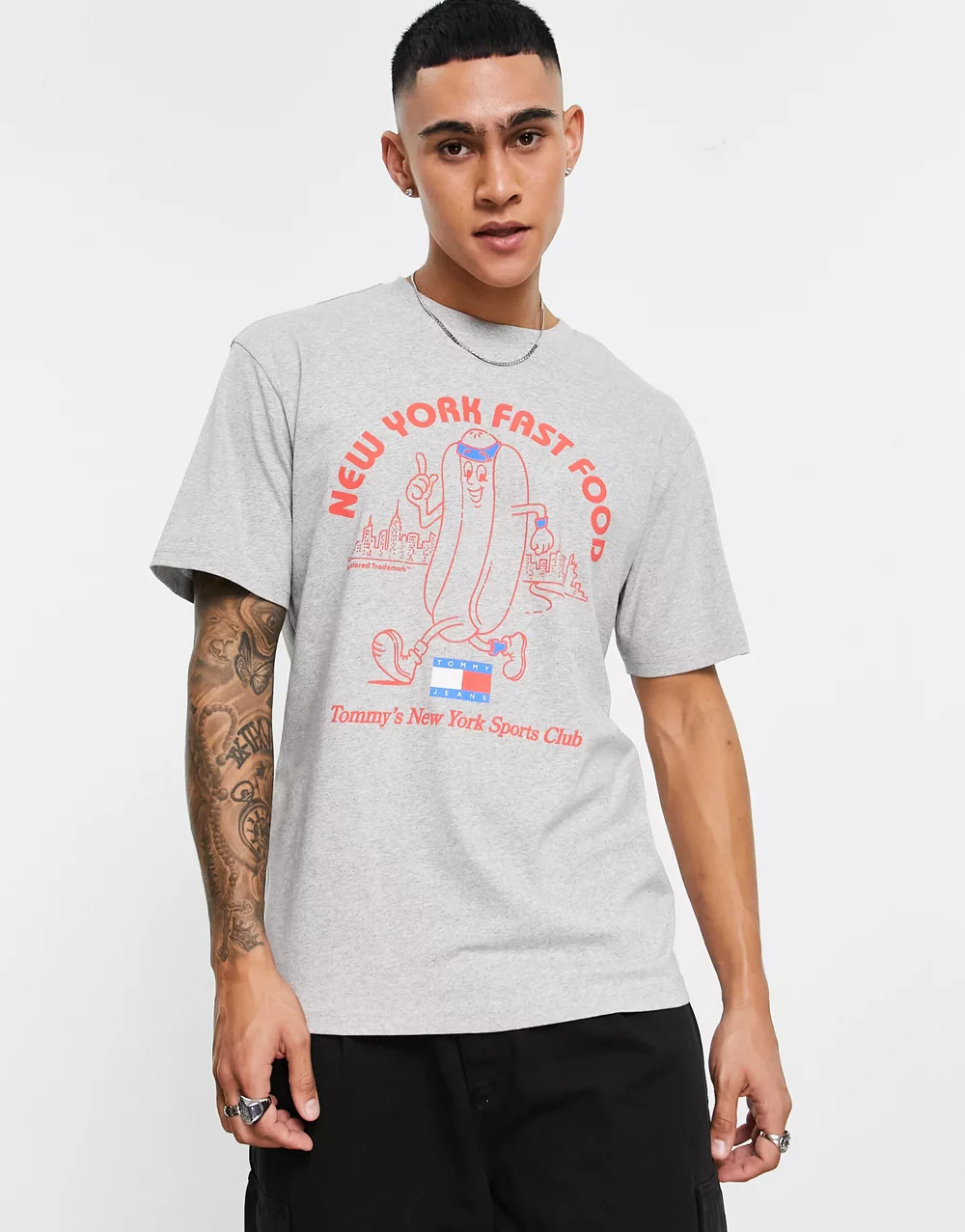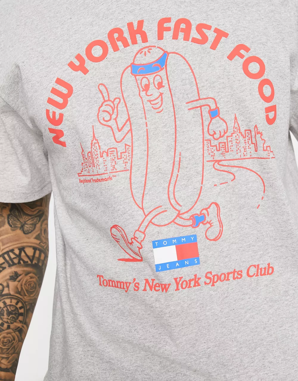 - Tommy Jeans cotton NYC sport club print classic fit t-shirt in grey marl