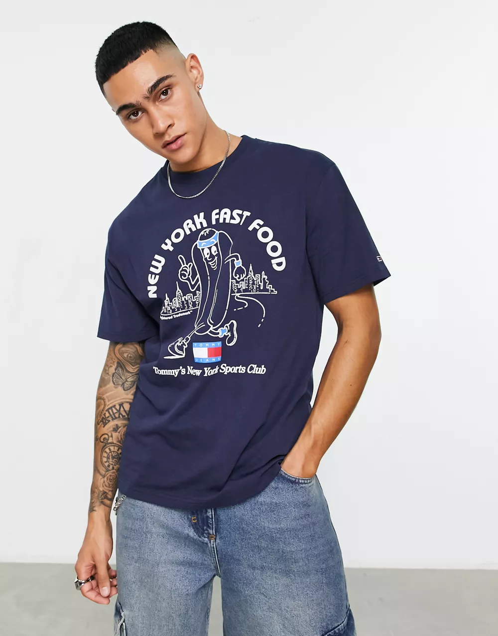 - Tommy Jeans cotton NYC sport club print classic fit t-shirt in navy