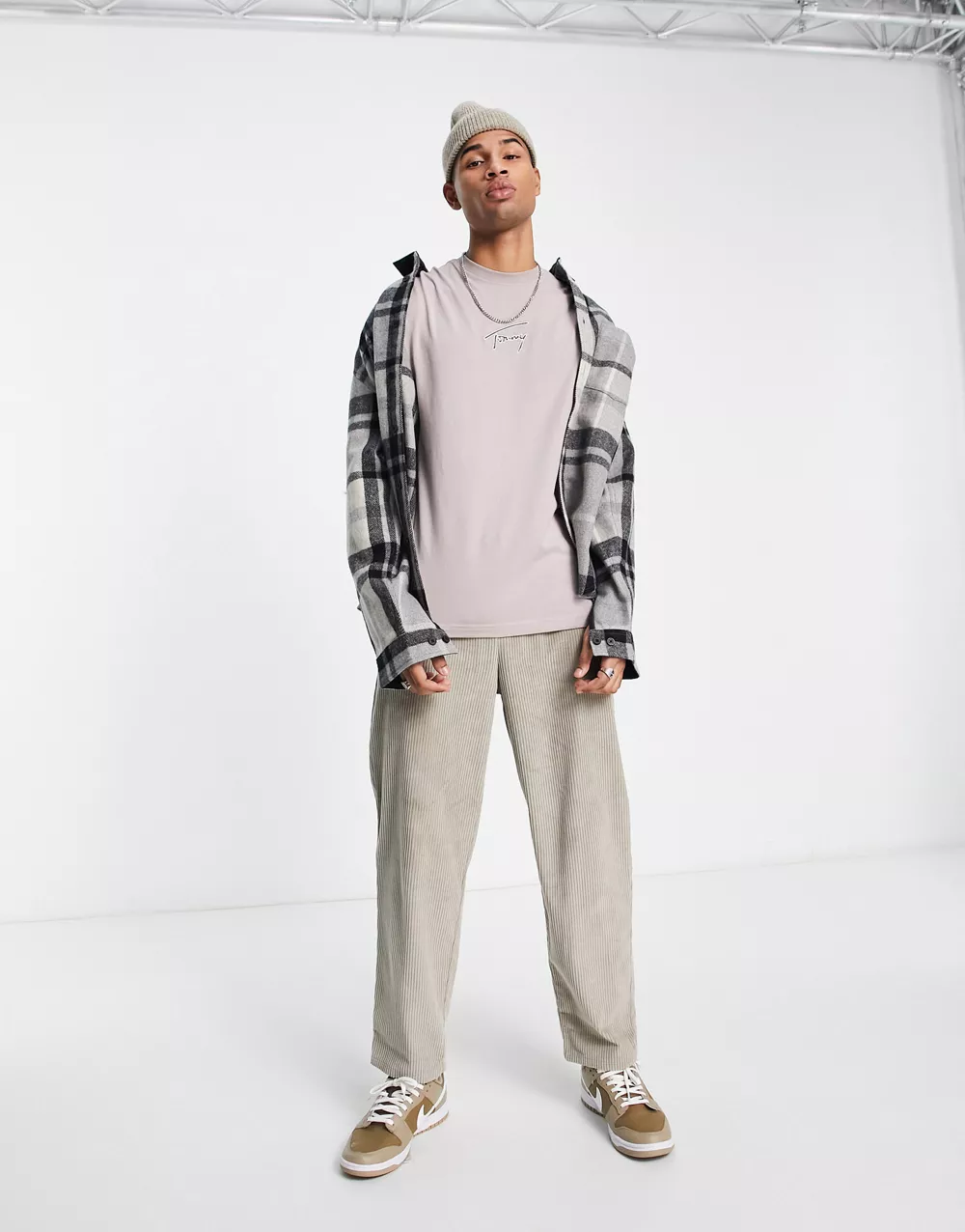 - Tommy Jeans cotton signature central logo classic fit t-shirt in stone