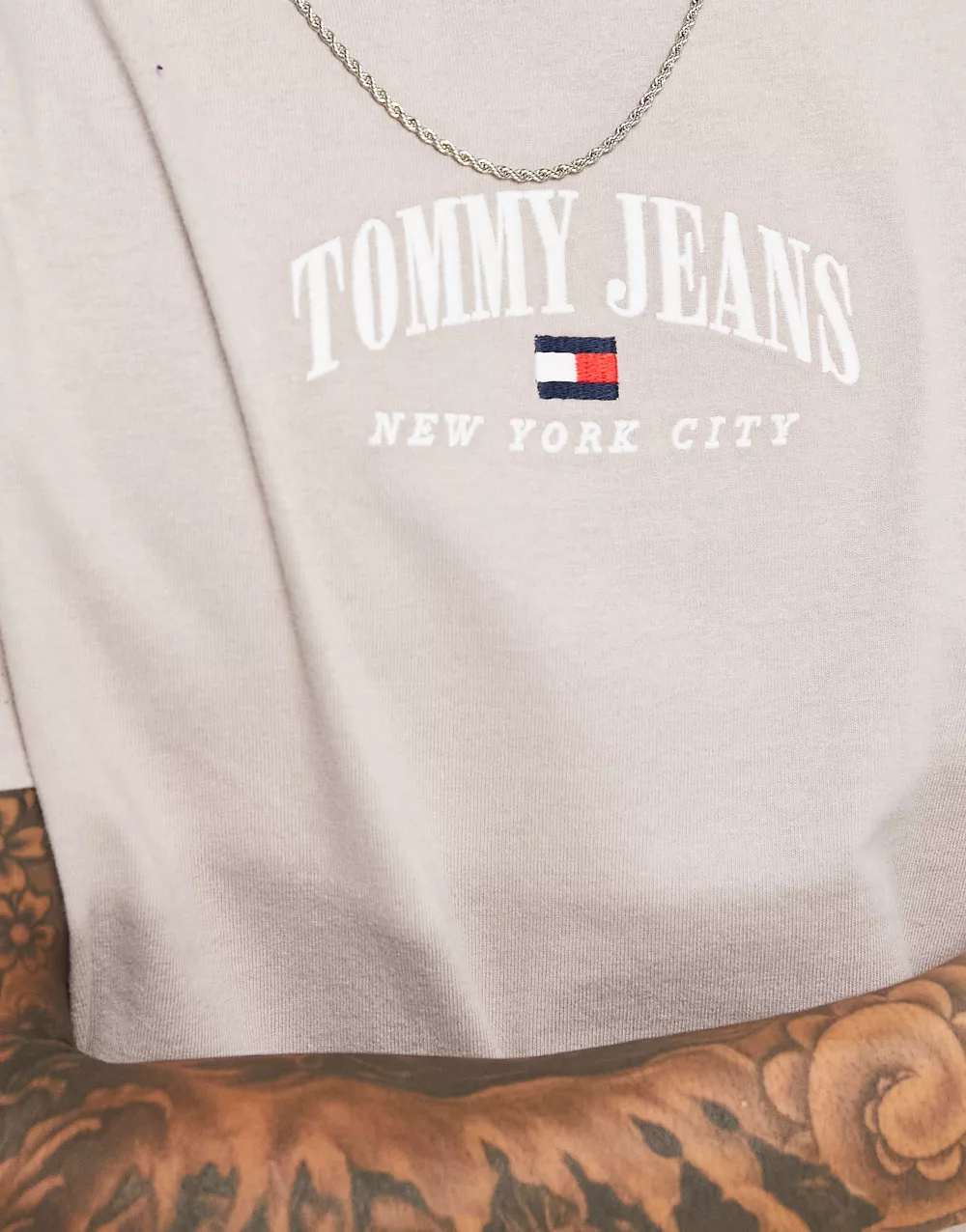 - Tommy Jeans cotton small varsity logo classic fit t-shirt in stone