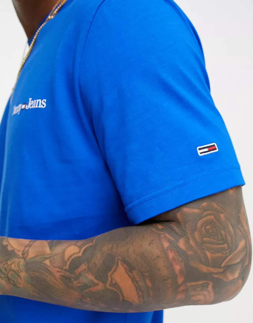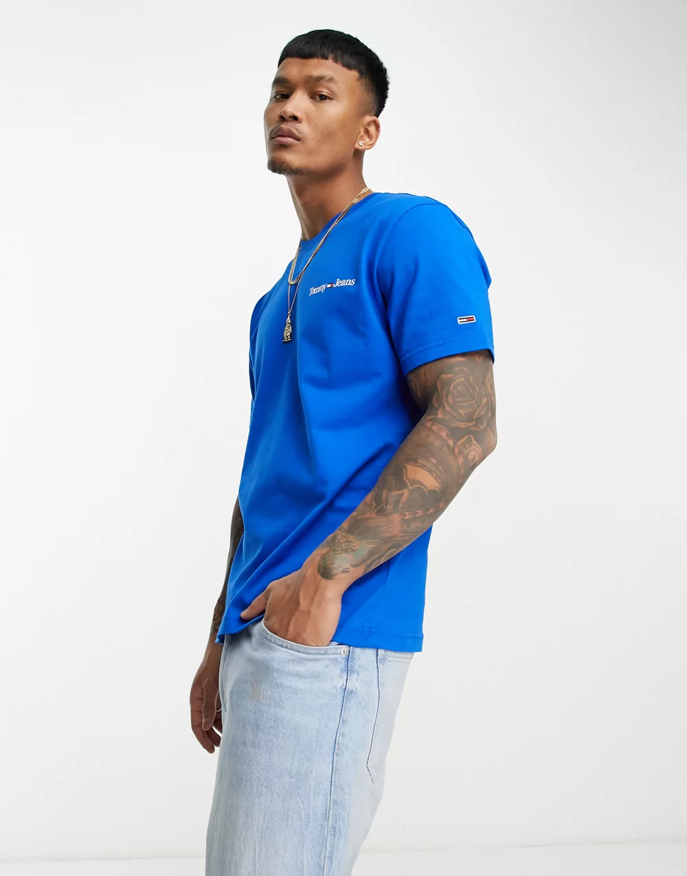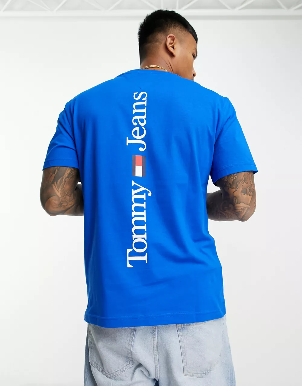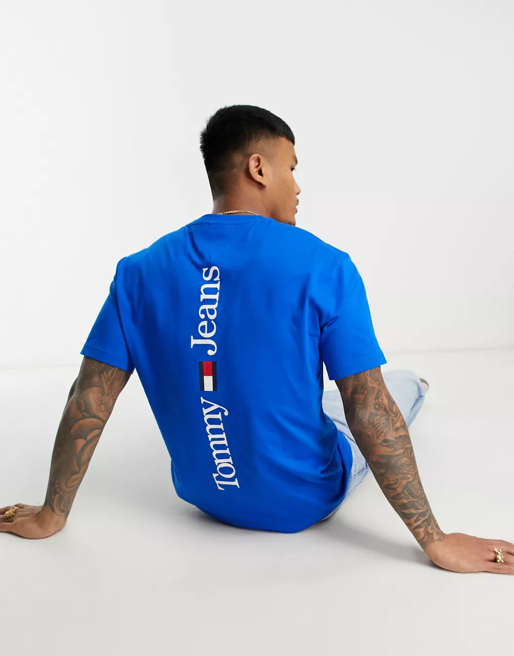 - Tommy Jeans linear back logo classic fit t-shirt in bright blue