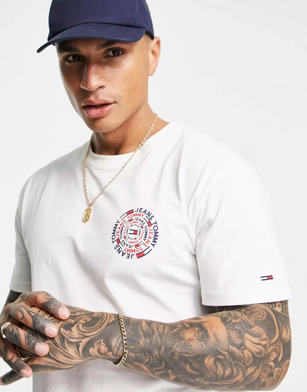 - Tommy Jeans round back print t-shirt classic fit in cream - CREAM