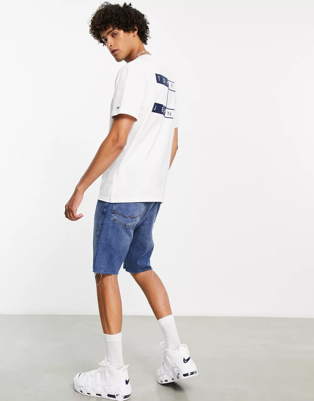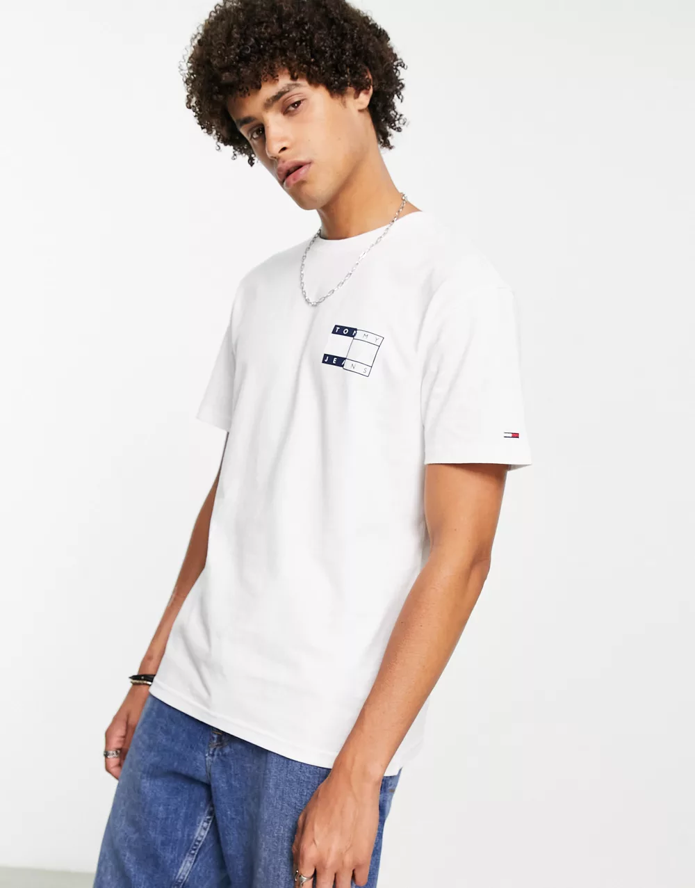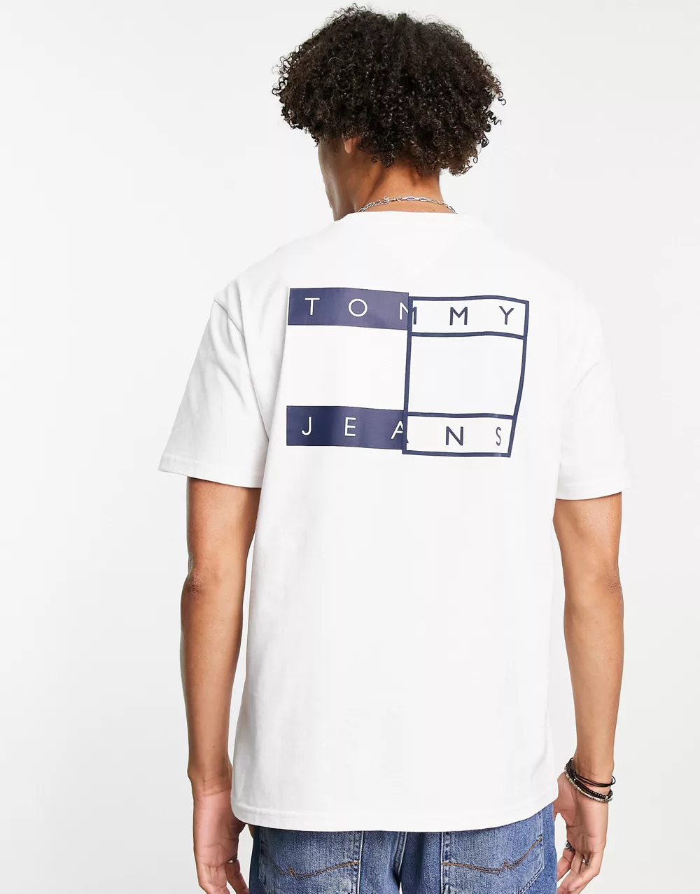 Tommy Jeans cotton back flag oversized denim trucker jacket in light wash