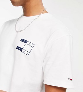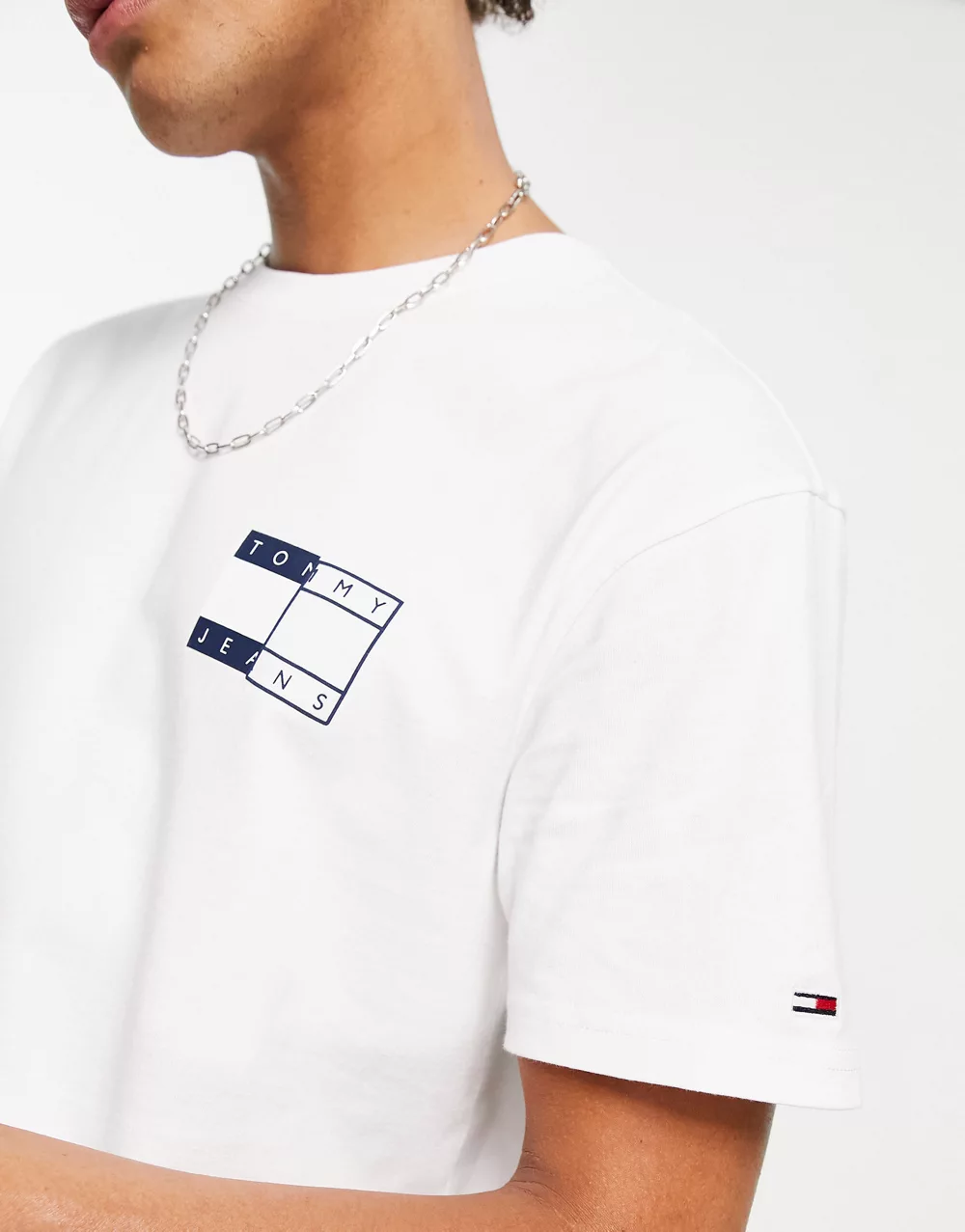 Tommy Hilfiger cotton blend large flag logo knit jumper in ivory