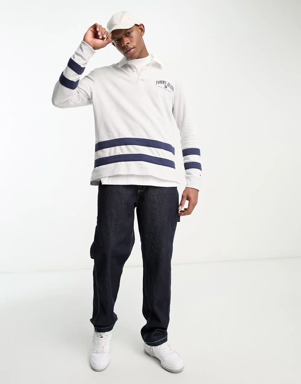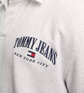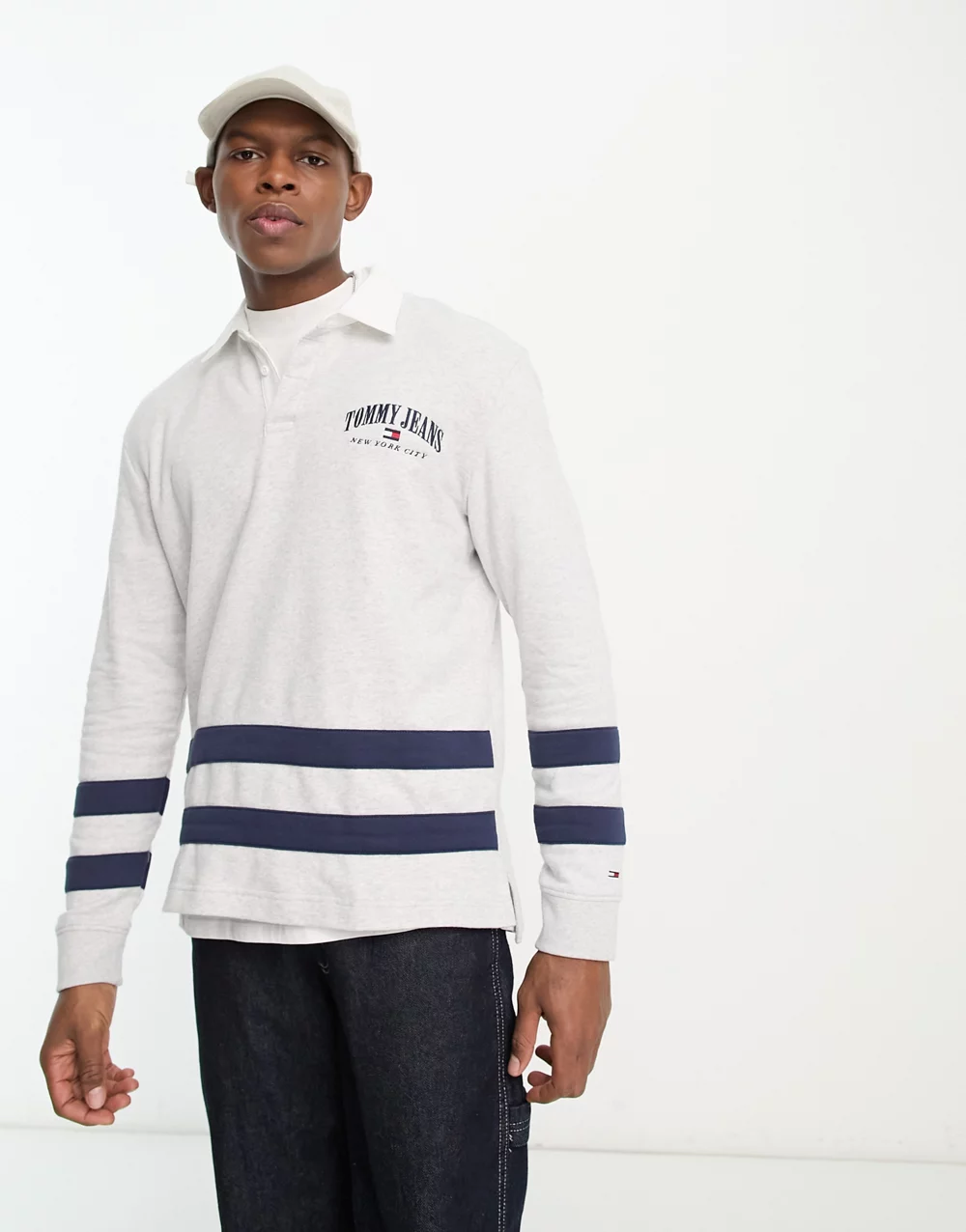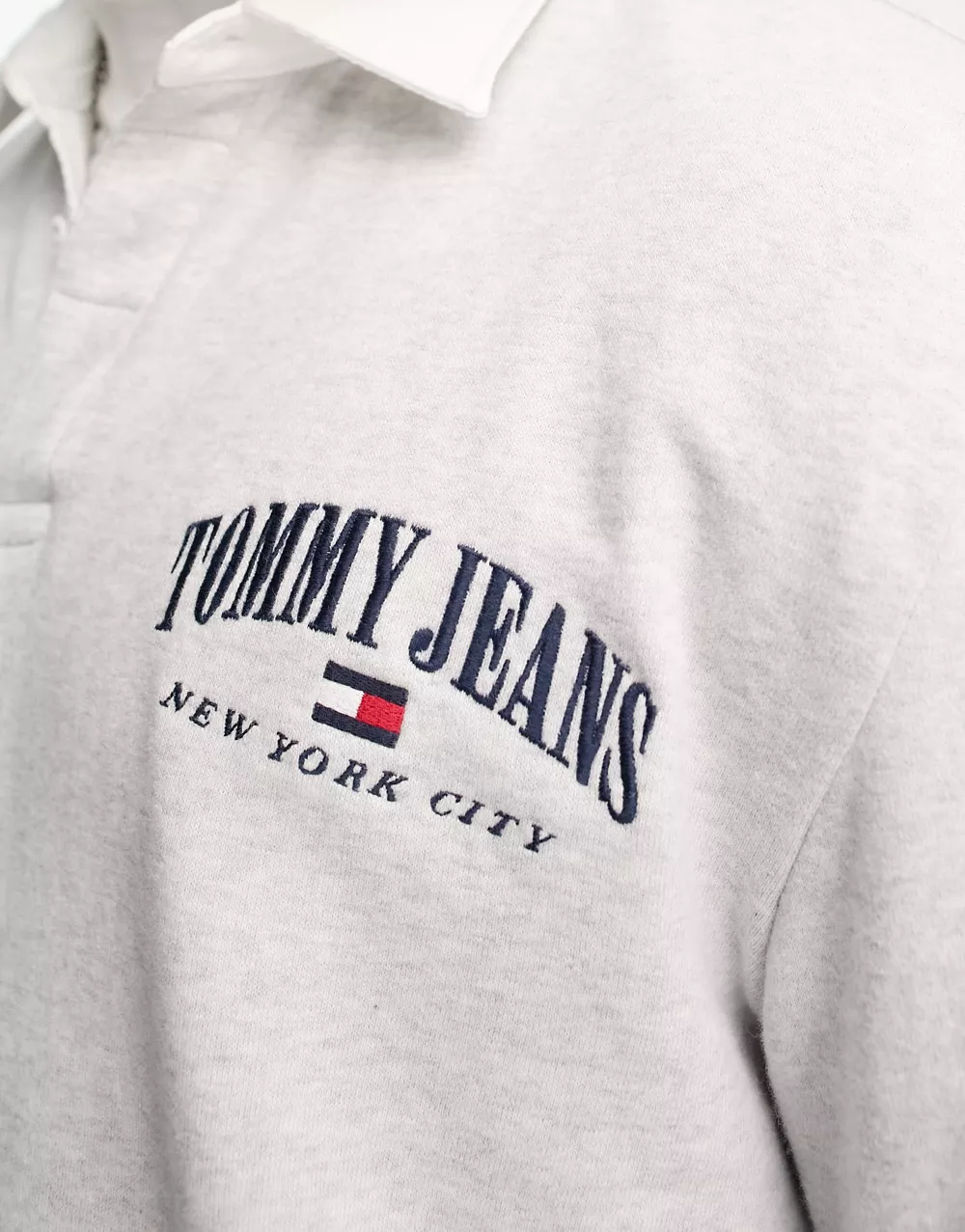 - Tommy Jeans varsity logo relaxed fit rugby polo in grey marl